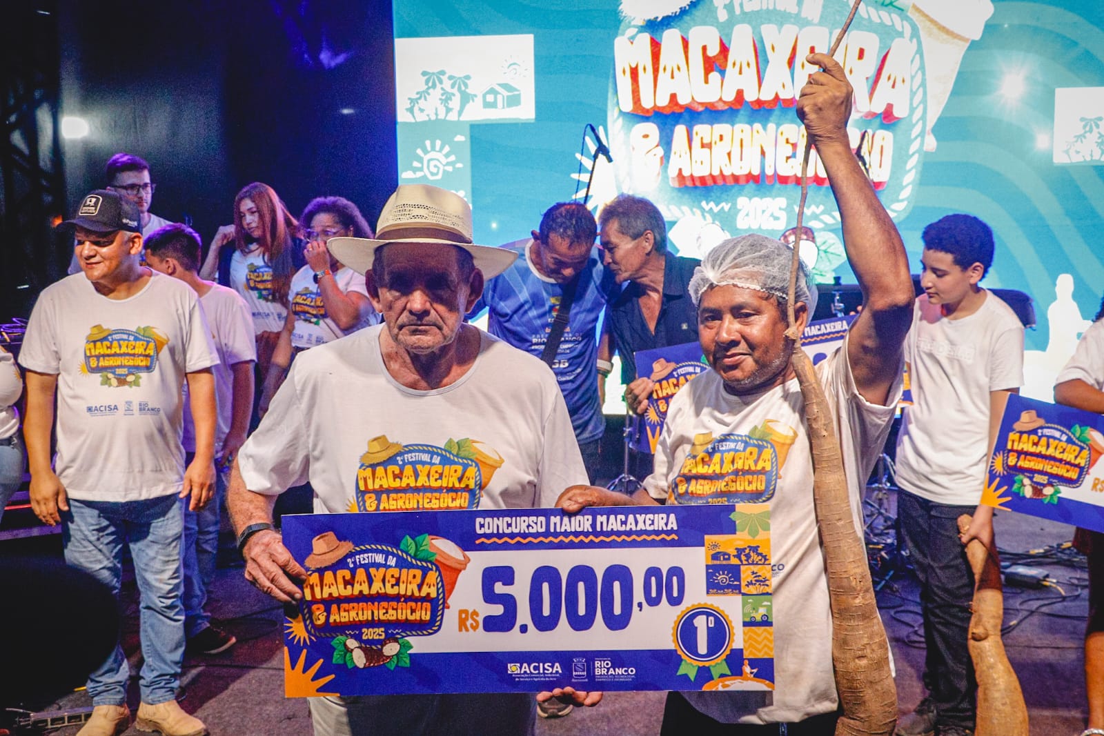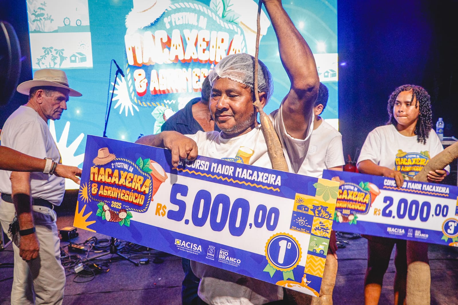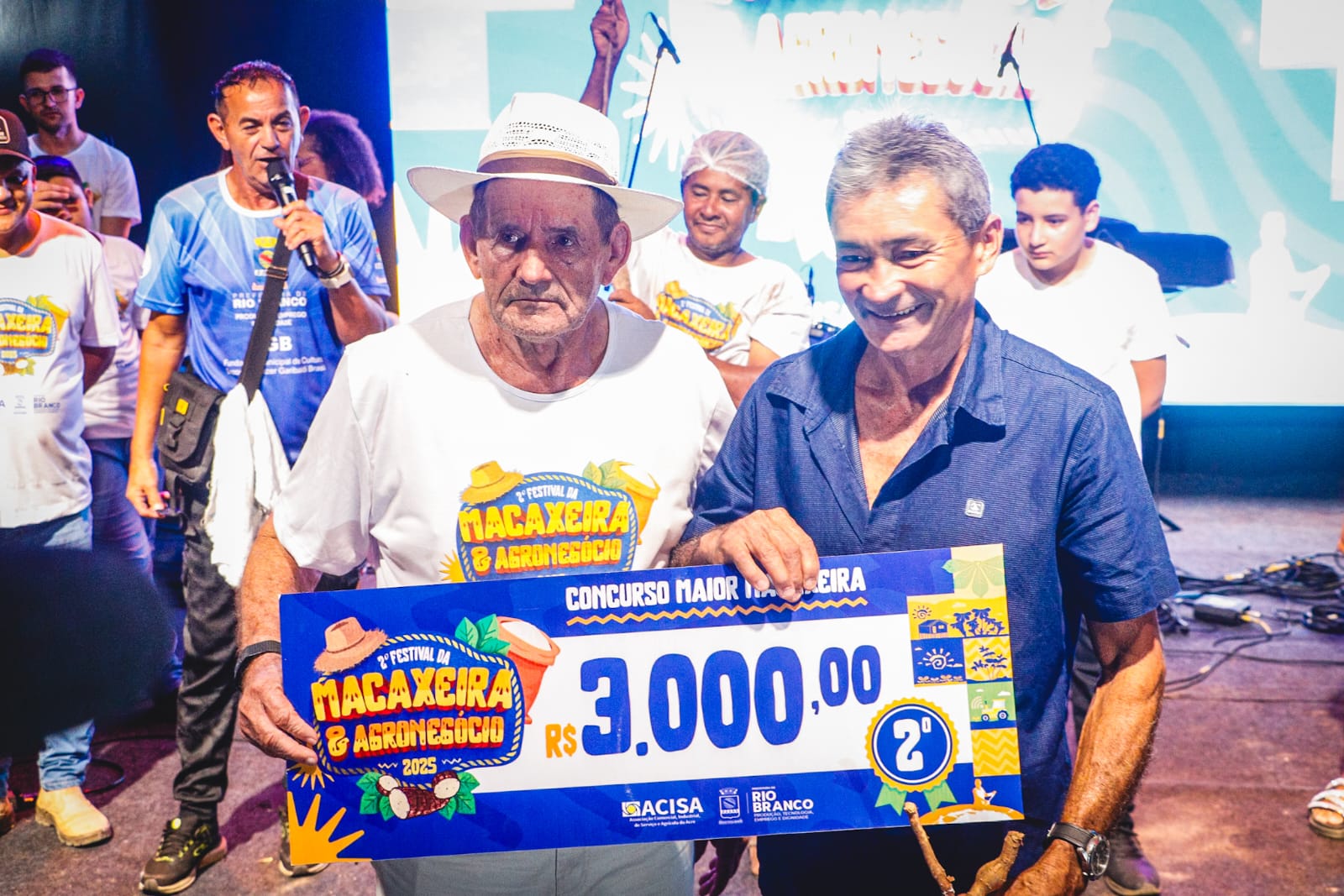 O grande vencedor da disputa foi o produtor rural, José Ferreira dos Santos, conhecido como seu Ferreirinha, morador do seringal Catuaba, no Belo Jardim. A raiz apresentada por ele pesou exatos 11,16 quilos, conquistando o primeiro lugar e garantindo a premiação de R$ 5 mil. O segundo e o terceiro colocados receberam R$ 3 mil e R$ 2 mil, respectivamente.