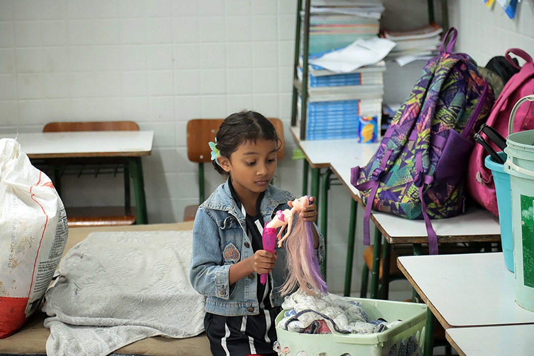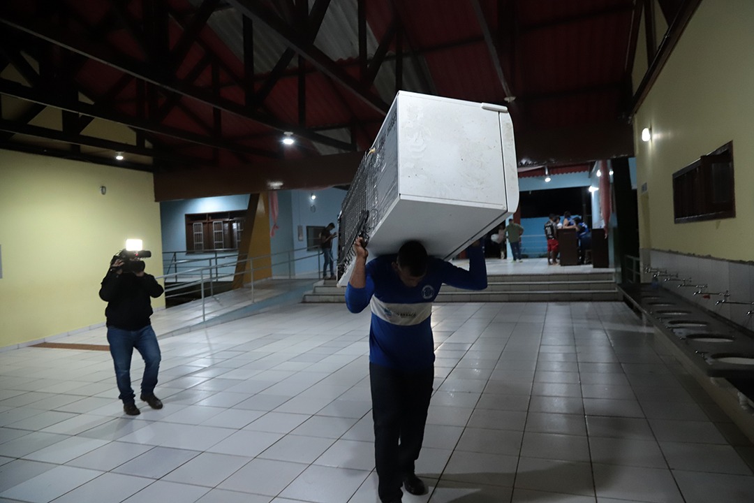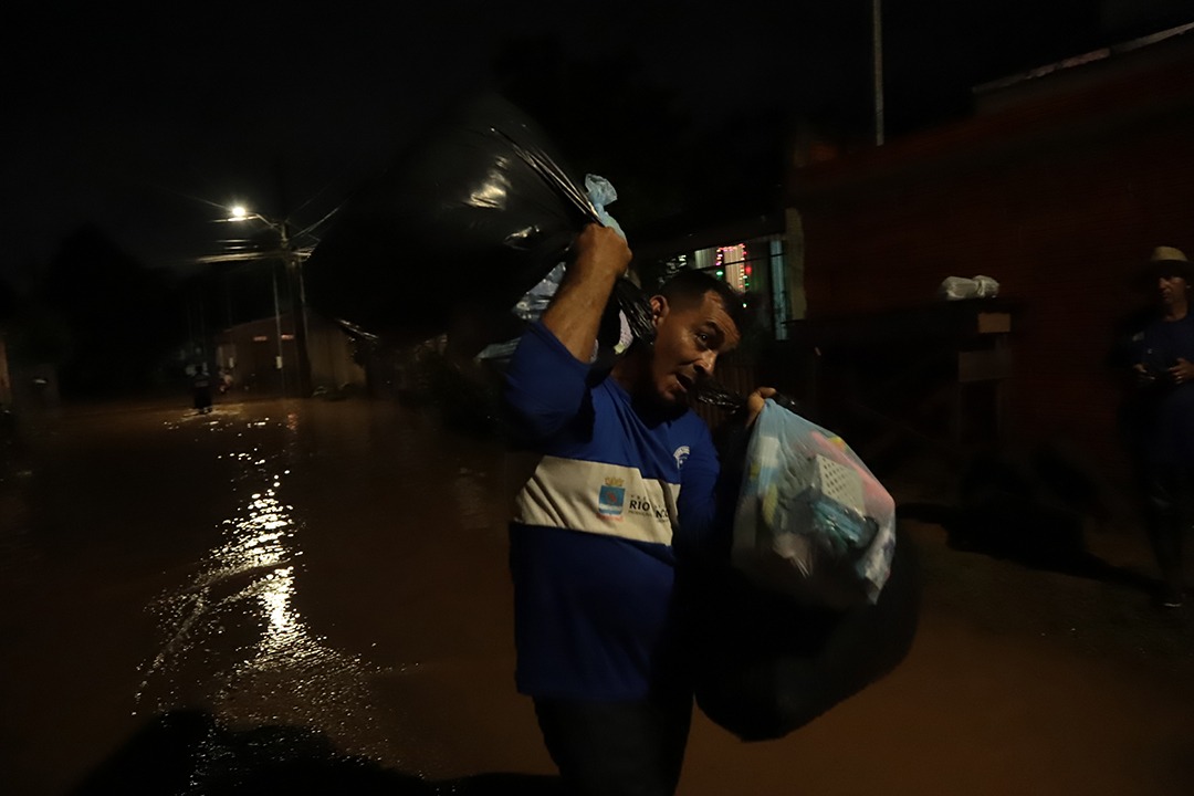 Os trabalhos seguiram até o início da madrugada de sábado, com o acolhimento e o abrigamento da última família na Escola Municipal Álvaro Vieira da Rocha (Foto: Val Fernandes/Secom)