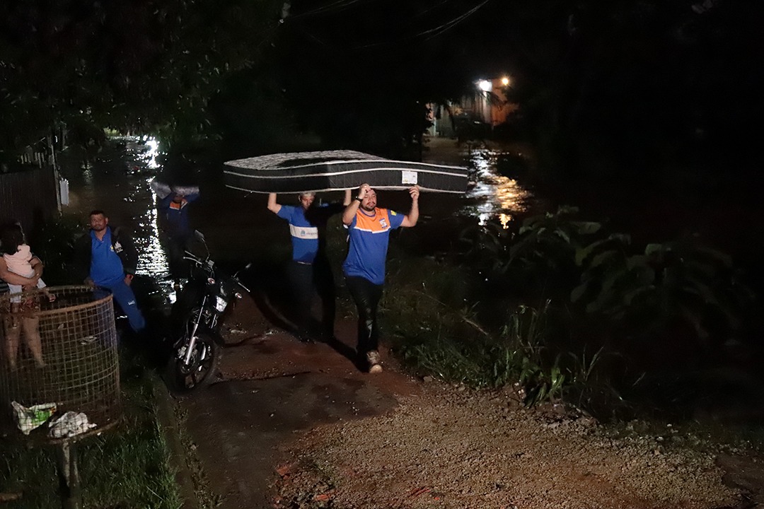 Os trabalhos iniciados ainda na tarde de sexta-feira (26), seguiram até o início da madrugada de sábado, com o acolhimento e o abrigamento da última família na Escola Municipal Álvaro Vieira da Rocha.