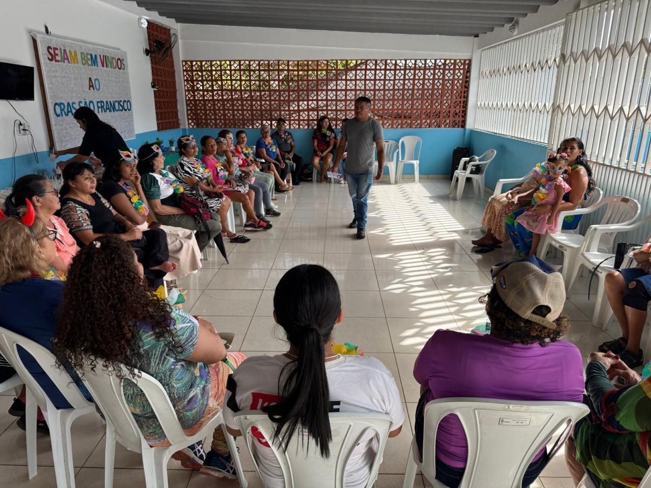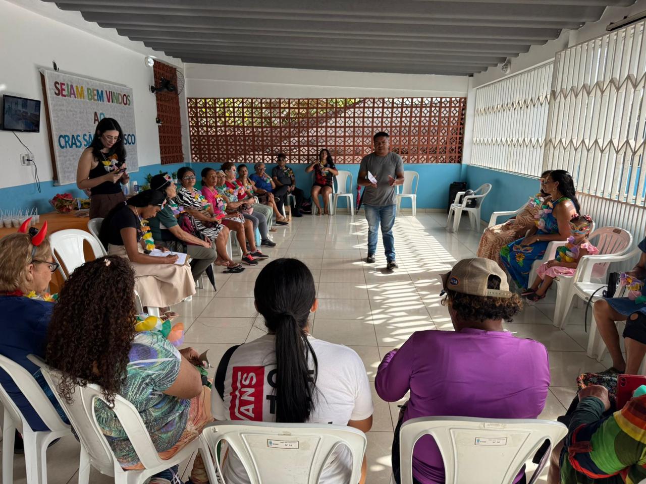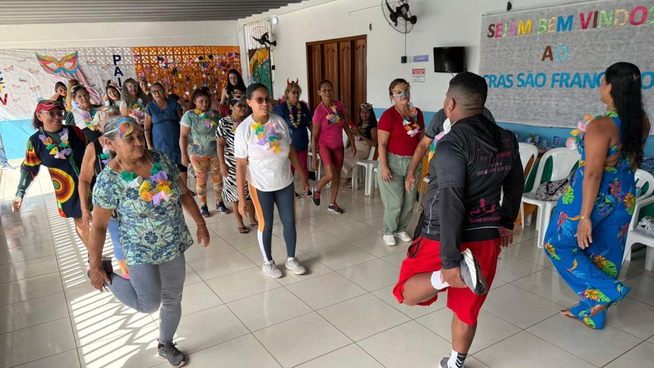 Em um cenário em que a solidão é um dos maiores desafios para quem atinge a terceira idade, as atividades físicas e lúdicas consolidam-se como ferramentas essenciais para a saúde física e mental dos idosos. O brincar surge como uma ponte para a interação social, devolvendo à pessoa idosa o senso de pertencimento e a alegria do convívio em grupo. E foi assim que o colorido das alegorias e o ritmo das marchinhas tomaram conta do Centro de Referência de Assistência Social (CRAS) São Francisco, em um evento que uniu tradição cultural e promoção da saúde, realizado na manhã desta sexta-feira (27).