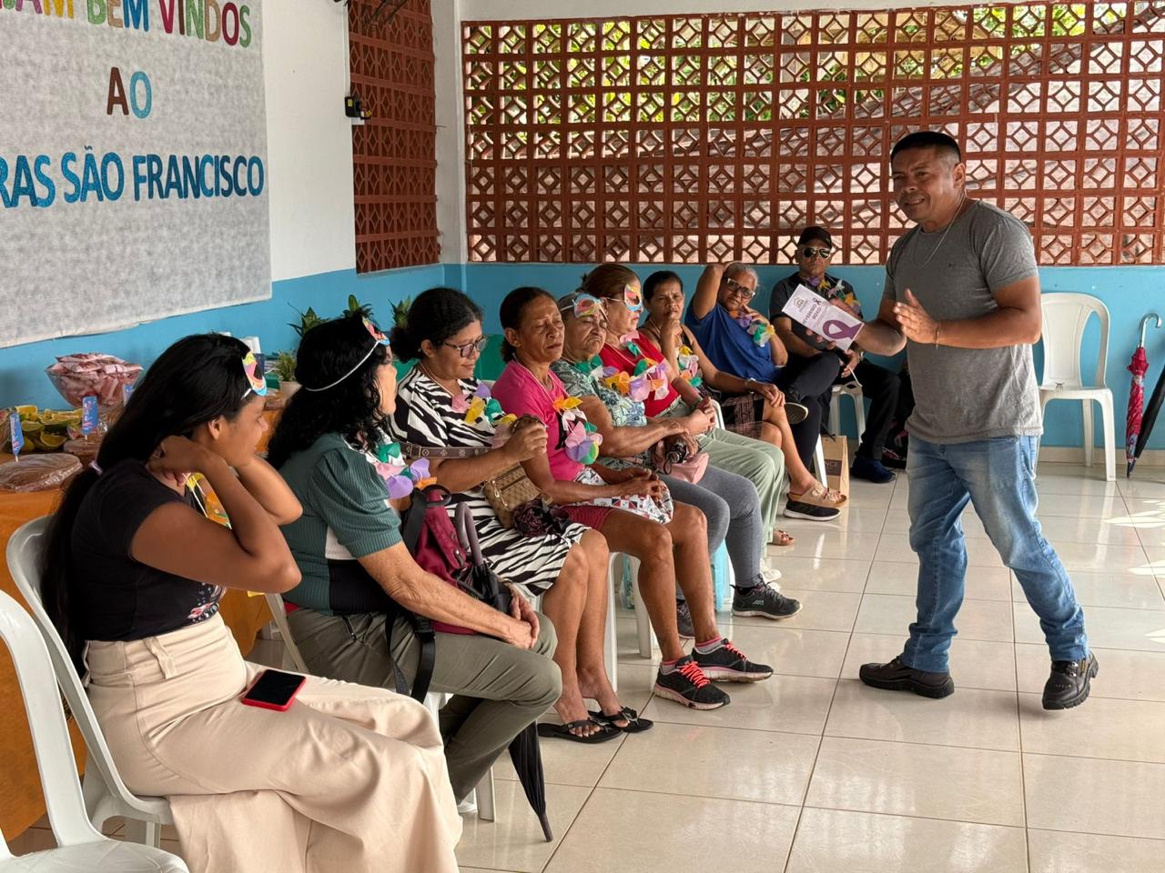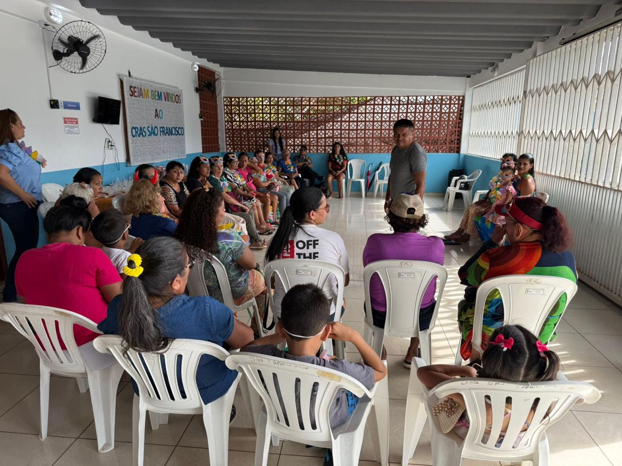 Ocicléia Brito, coordenadora do CRAS São Francisco, destacou a importância das atividades desenvolvidas para os idosos e comentou sobre a programação da manhã.