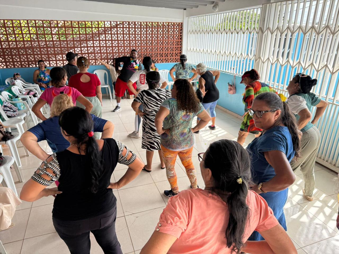 Muito além da diversão, a programação focou no fortalecimento de vínculos e na manutenção da capacidade funcional dos participantes. Antes de caírem na folia, os idosos participaram de dinâmicas de alongamento e exercícios aeróbicos leves, essenciais para a coordenação motora e a prevenção de doenças crônicas, como a hipertensão.