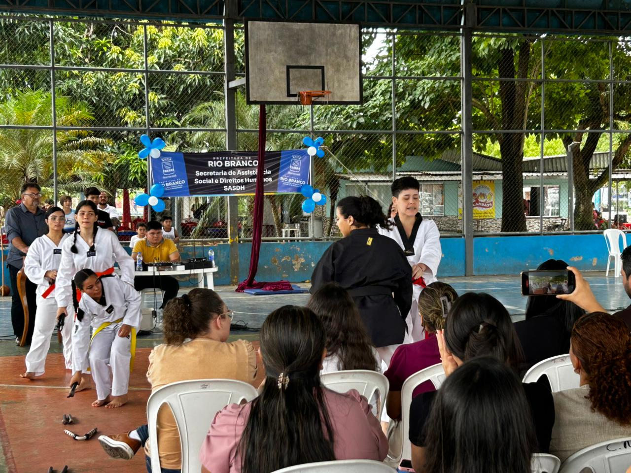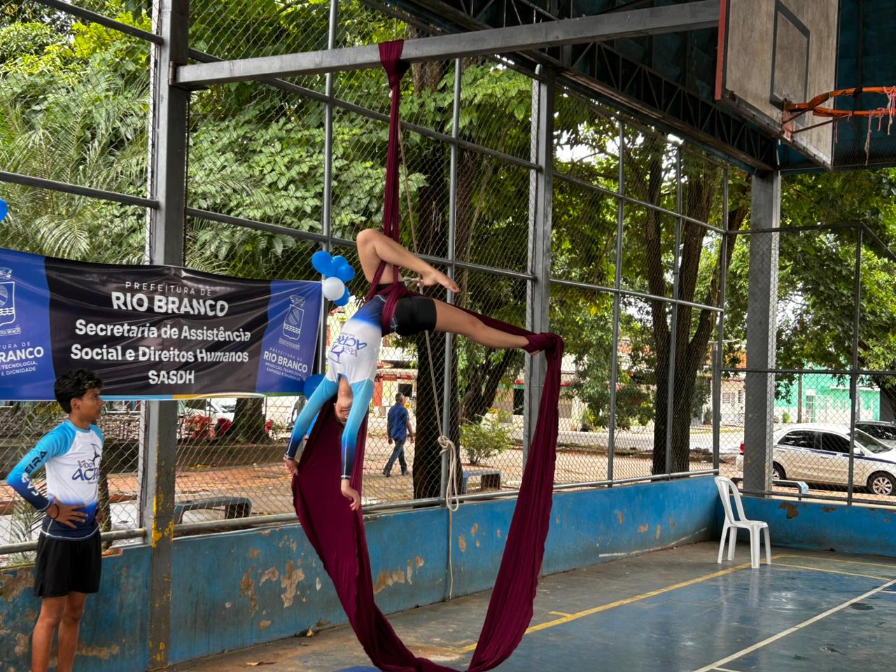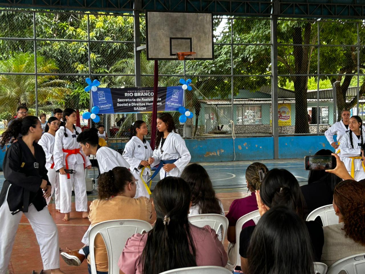 A Prefeitura de Rio Branco, por meio da Secretaria Municipal de Assistência Social e Direitos Humanos, realizou na manhã desta quarta-feira (18), a mobilização batizada de “Juventude em Ação”. O evento ofereceu atendimentos de saúde e apresentações de atividades esportivas no Centro da Juventude, localizado no bairro Cidade Nova. A ocasião também contou com a assinatura da ordem de serviço para a reforma da quadra utilizada para práticas comunitárias e atividades desportivas.