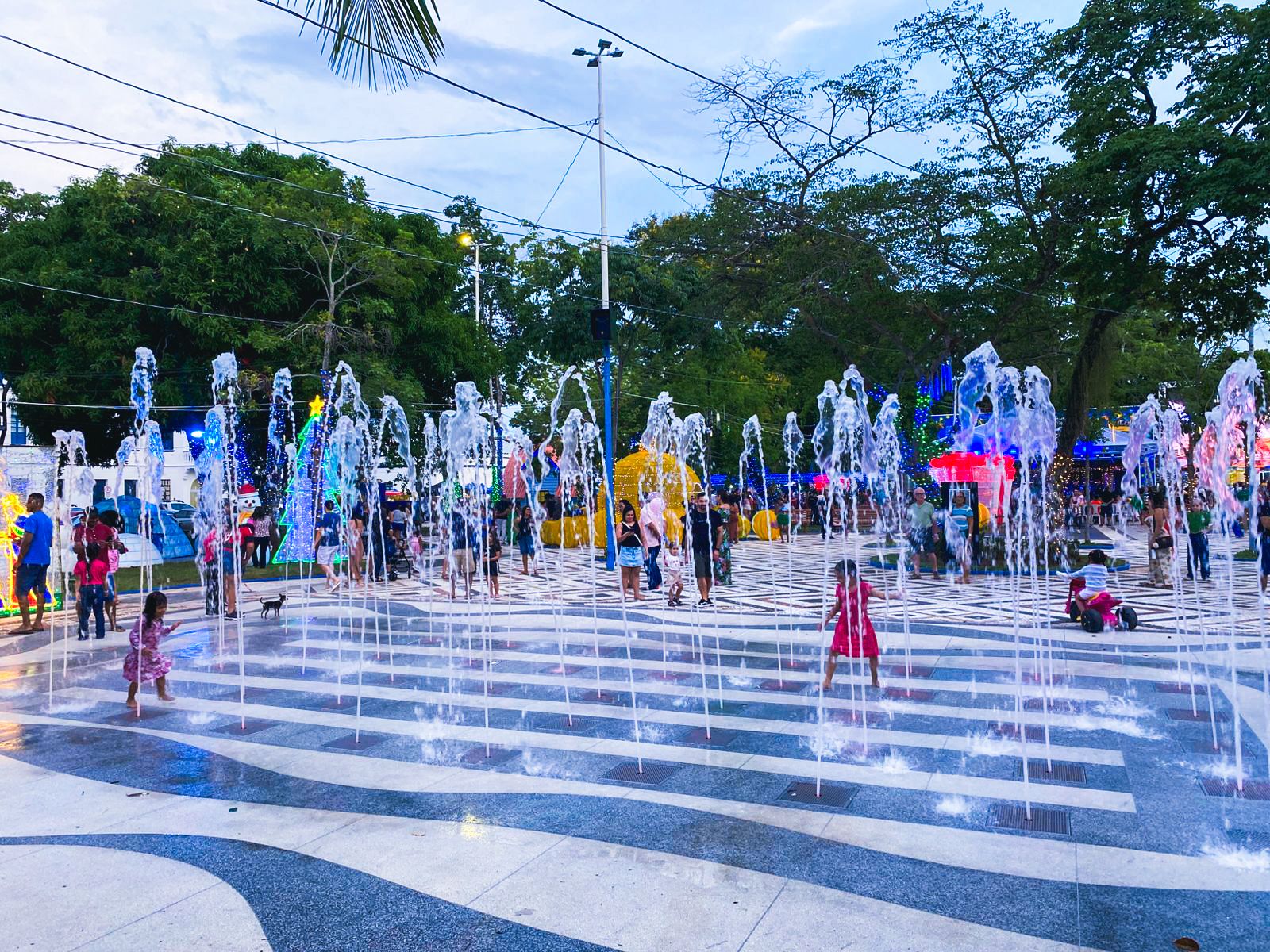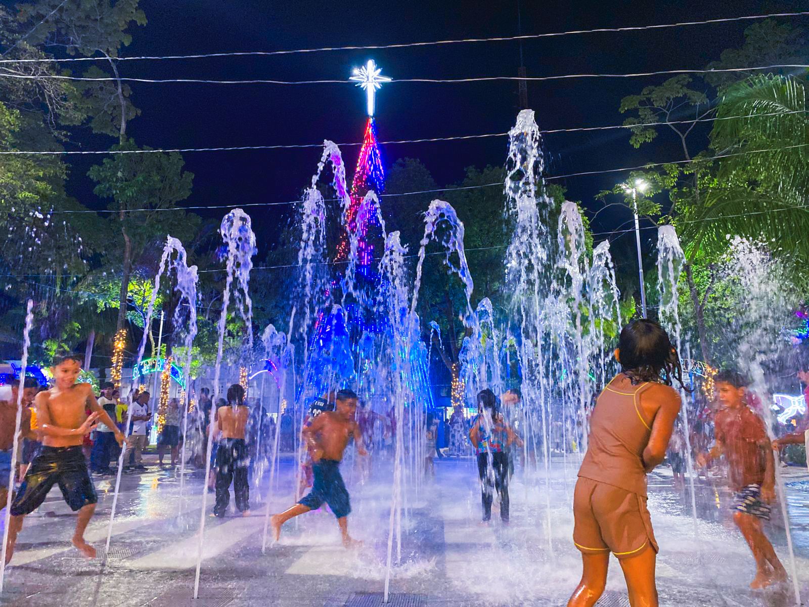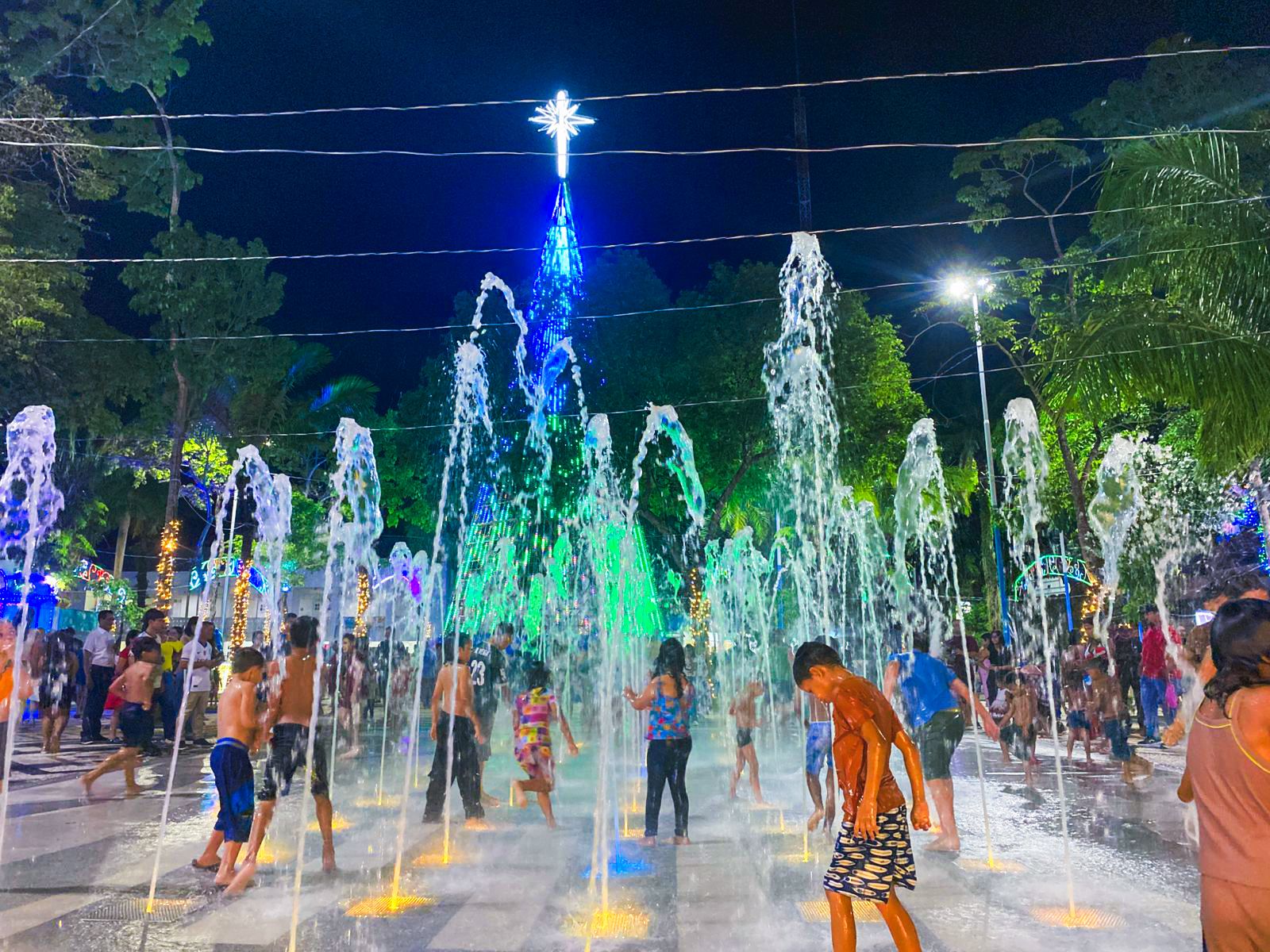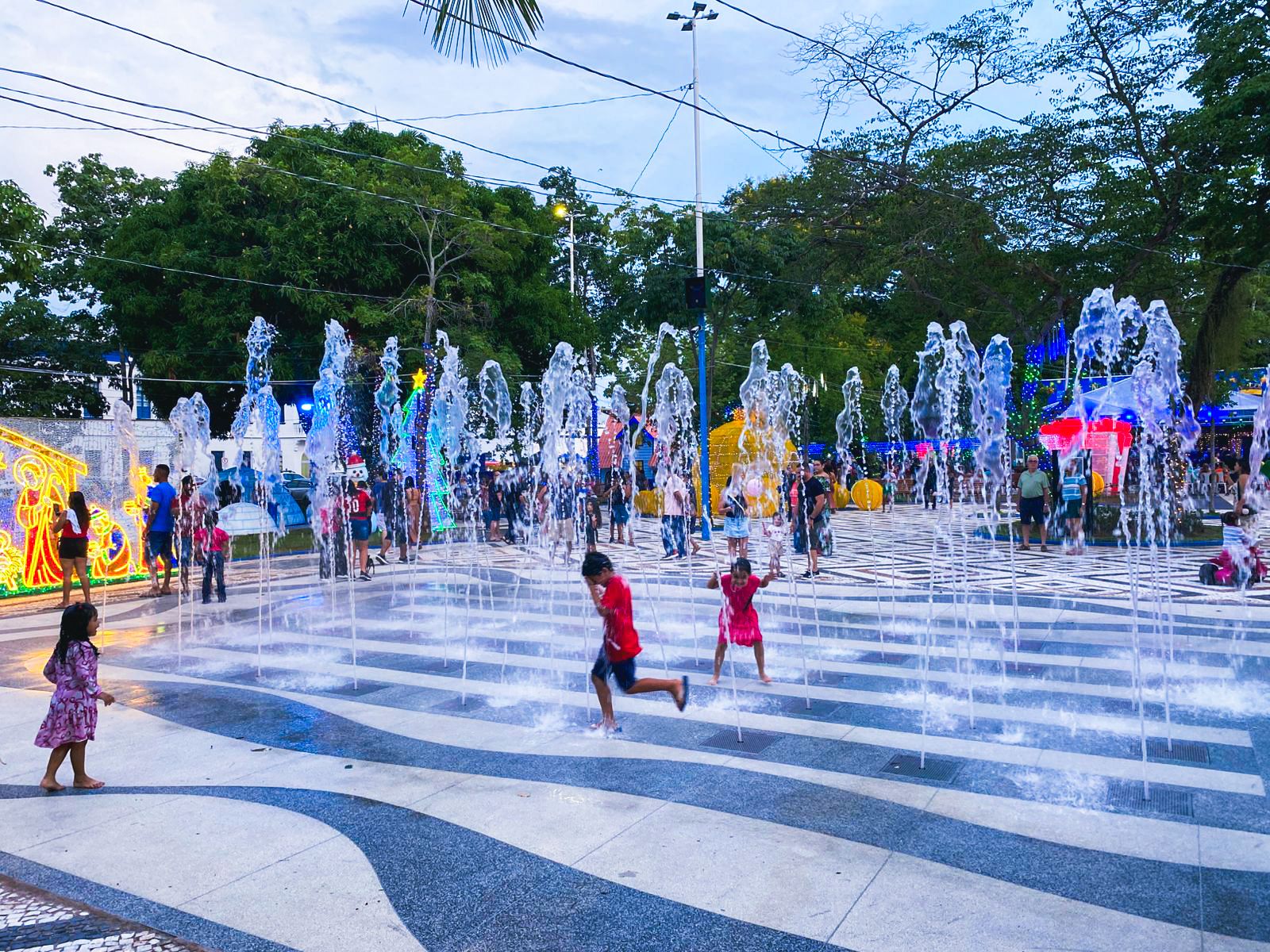 A fonte luminosa interativa, um dos principais atrativos da Praça da Revolução, voltou a funcionar e fez a alegria das crianças. (Foto: Jeferson Carvalho/Secom)