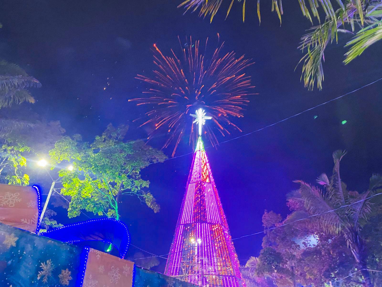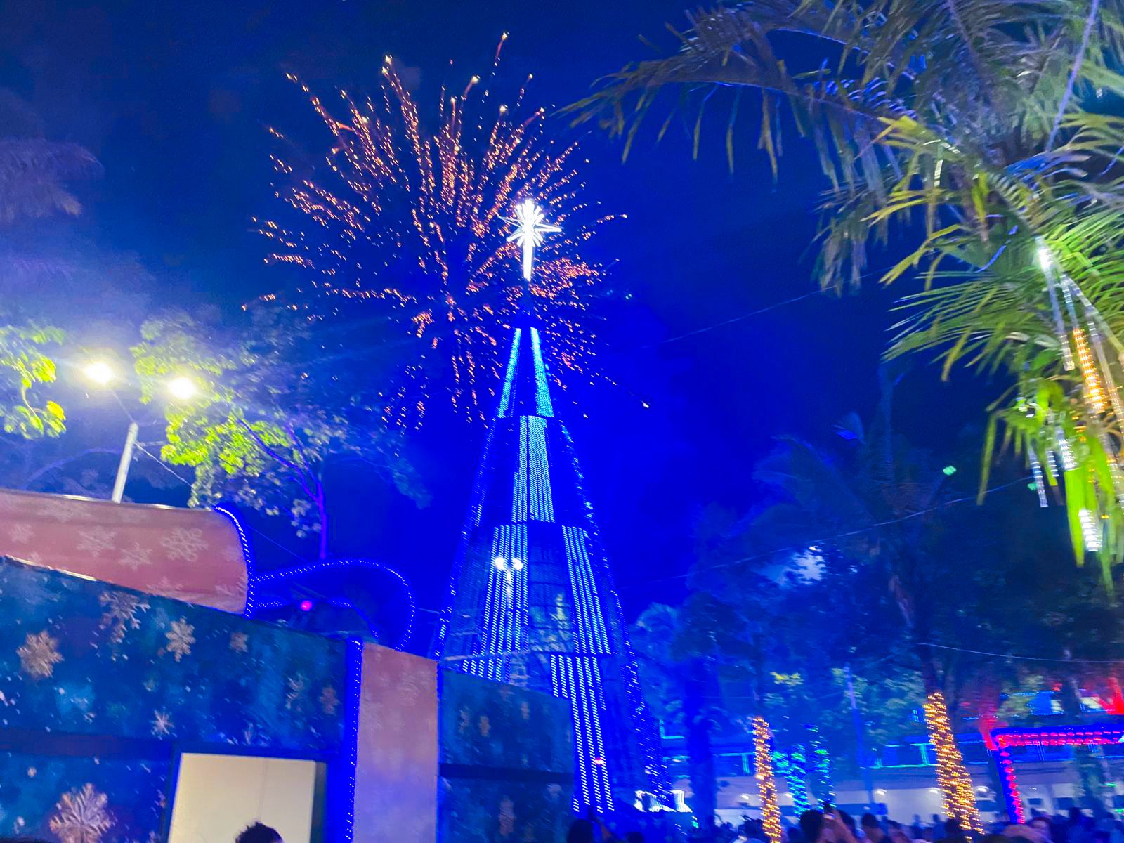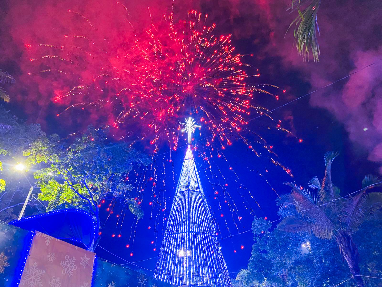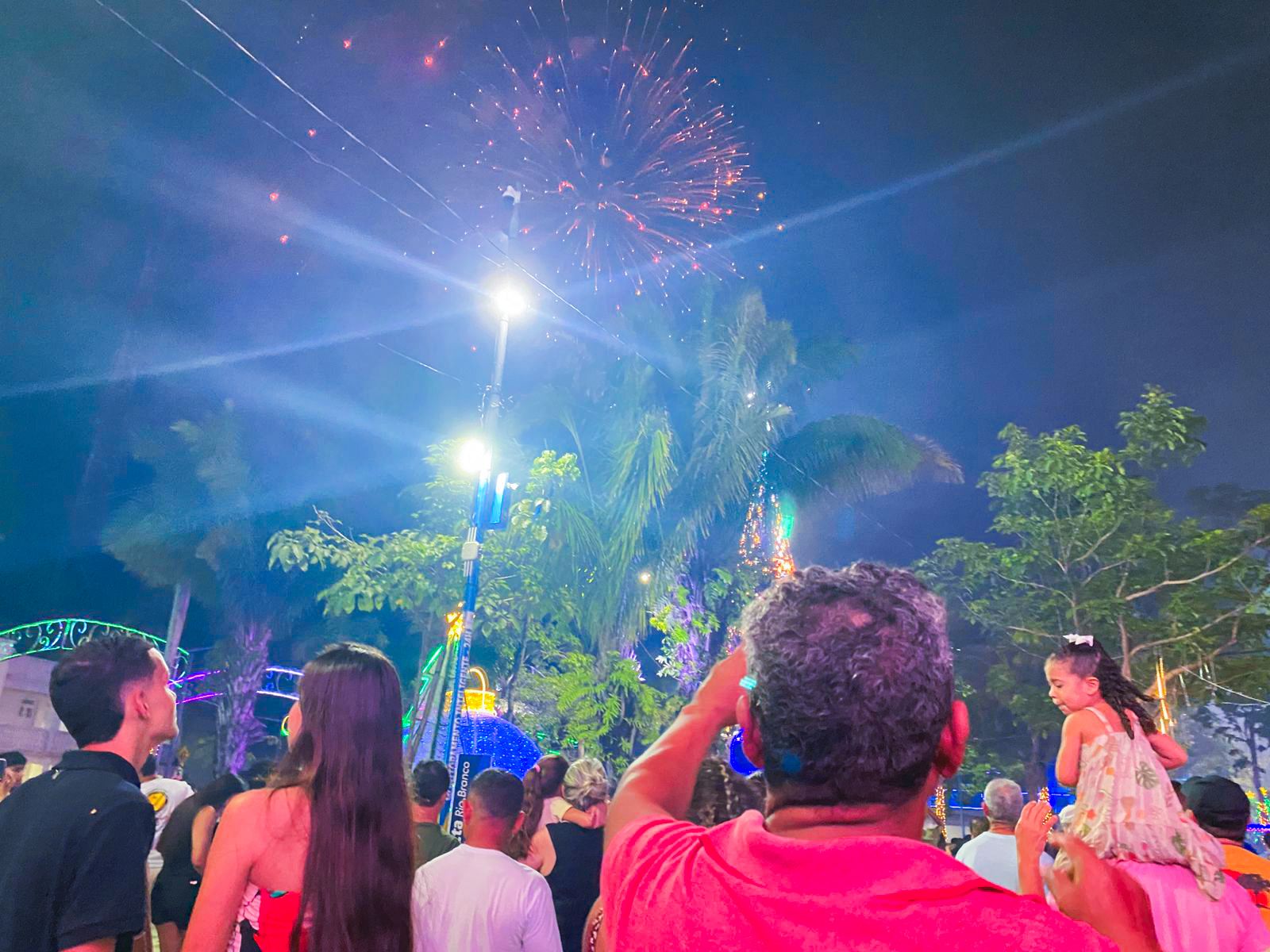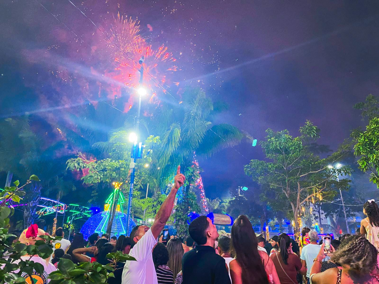 O sucesso de mais um ano de celebração natalina, na Praça da Revolução, foi demonstrado por centenas de visitantes, que admiravam o show pirotécnico dos fogos de artifício apresentado pelos organizadores.