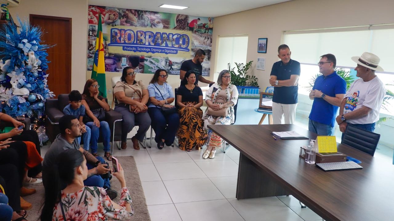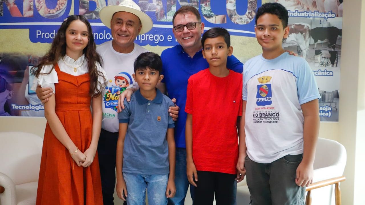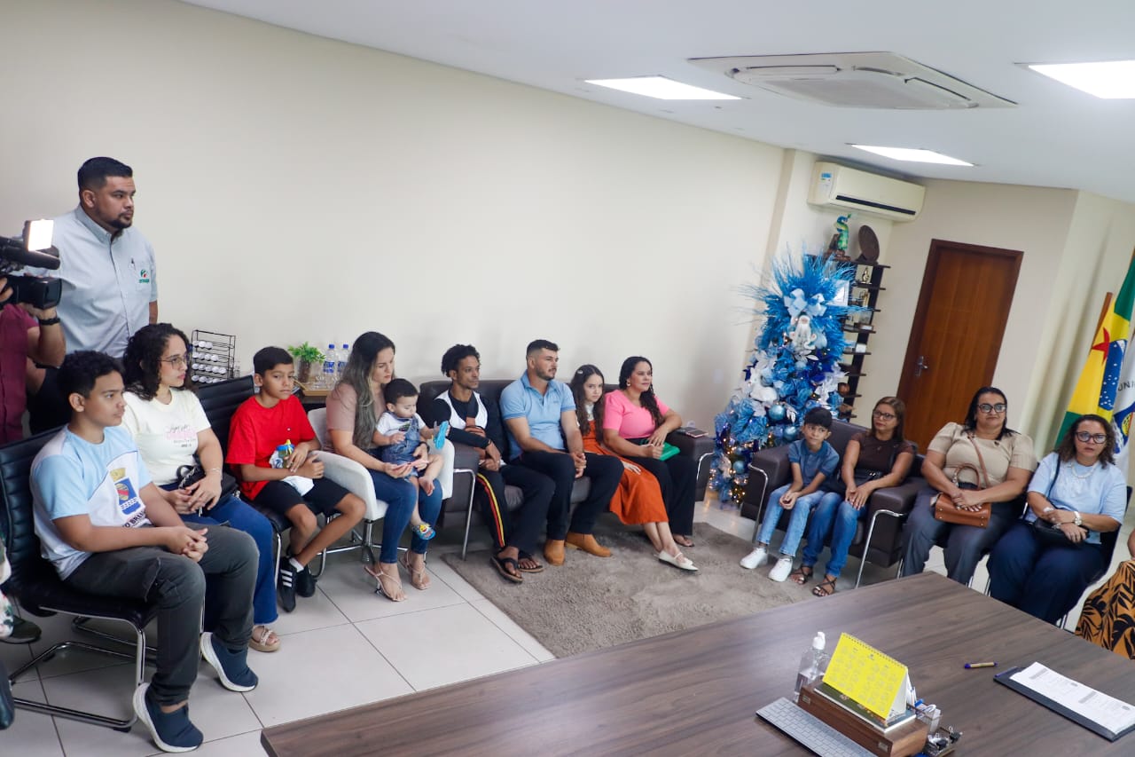 Alunos da rede pública municipal de Rio Branco, selecionados pelo programa de intercâmbio educativo Rumo à NASA e à Disney, idealizado pela Prefeitura de Rio Branco, visitaram nesta sexta-feira (19), o prefeito Tião Bocalom, para agradecer pela oportunidade de conhecerem a NASA e a Disney, nos Estados Unidos. Acompanhados por seus pais e professores, os estudantes expressaram a importância do programa para seu crescimento pessoal e educacional.