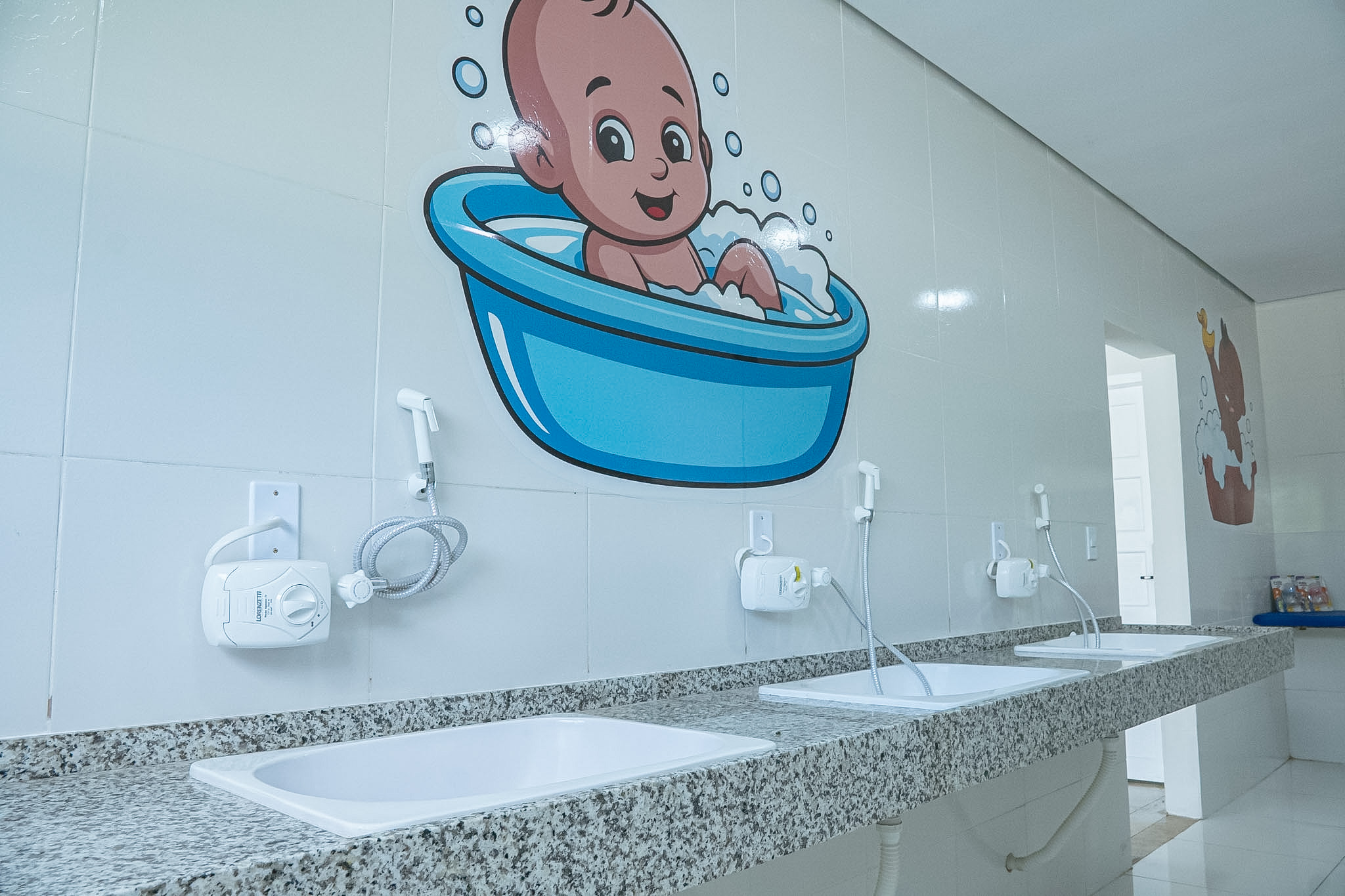 • Banheiros infantis com chuveiros, incluindo estrutura adaptada para pessoas com deficiência