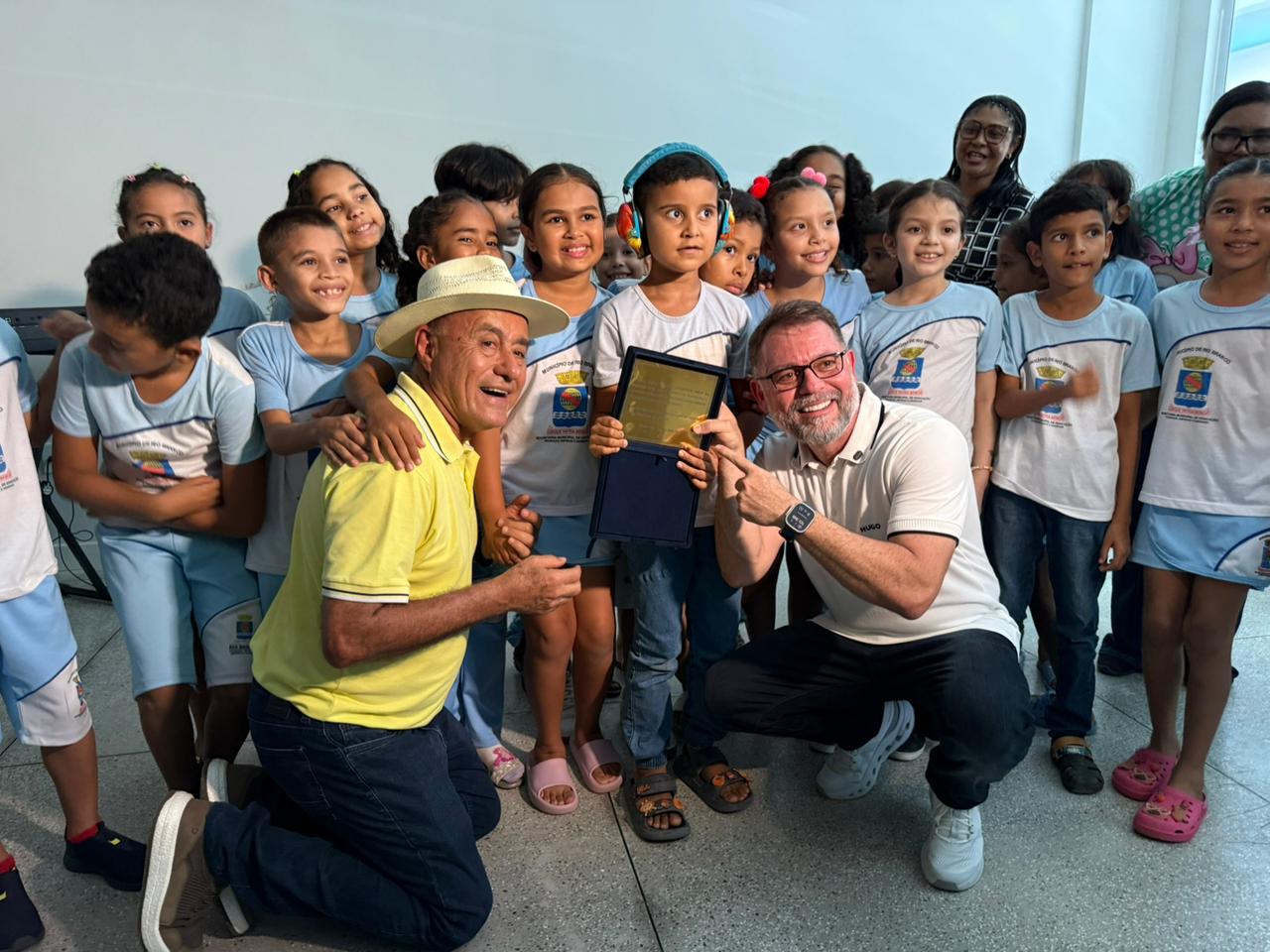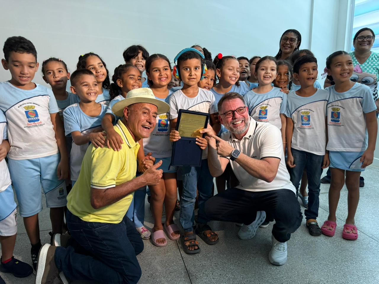 Durante o evento, o prefeito Tião Bocalom também foi homenageado com a placa de “Prefeito Amigo da Educação”, entregue pelo vice-prefeito, em reconhecimento aos investimentos realizados na área.