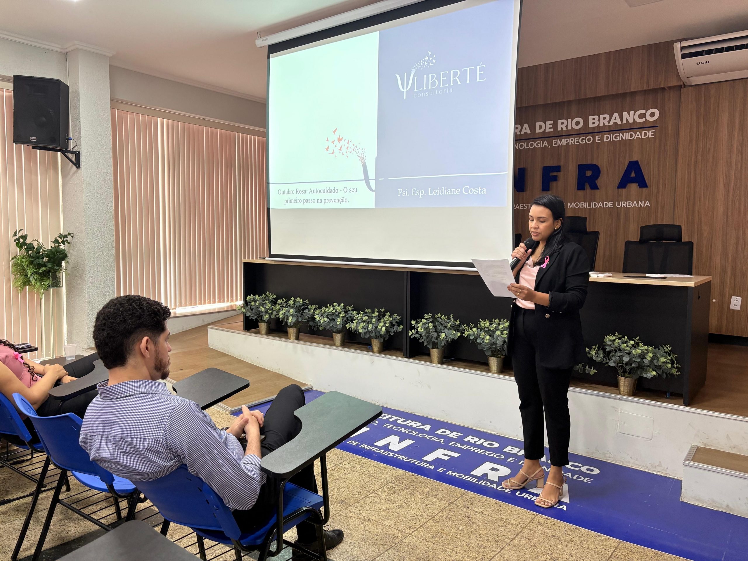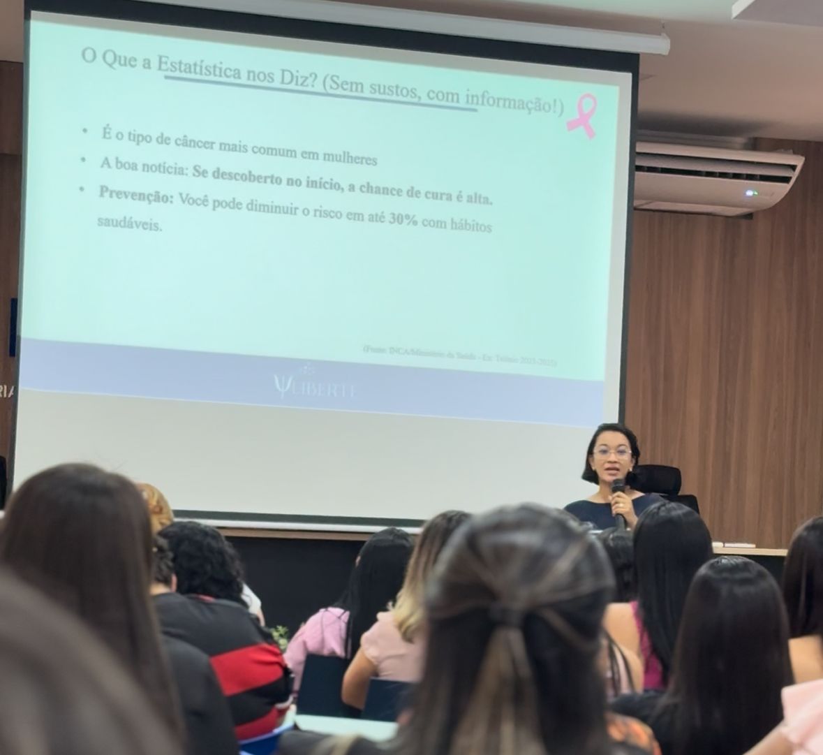 A iniciativa faz parte das comemorações alusivas ao Dia do Servidor Público e da campanha de conscientização e prevenção ao câncer de mama. A palestra foi ministrada pela psicóloga Lidiane Costa, que destacou a importância do autocuidado e do cuidado integral com a saúde.