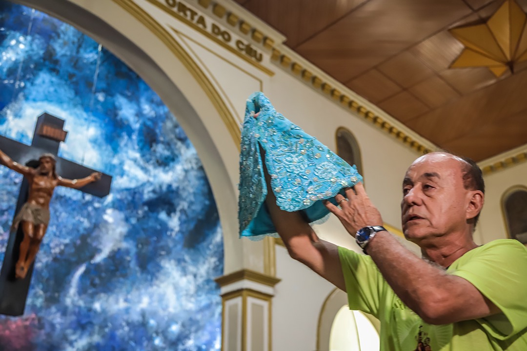A troca do manto é uma das cerimônias mais simbólicas que antecedem o Círio de Nazaré. (Foto: Val Fernandes/Secom)