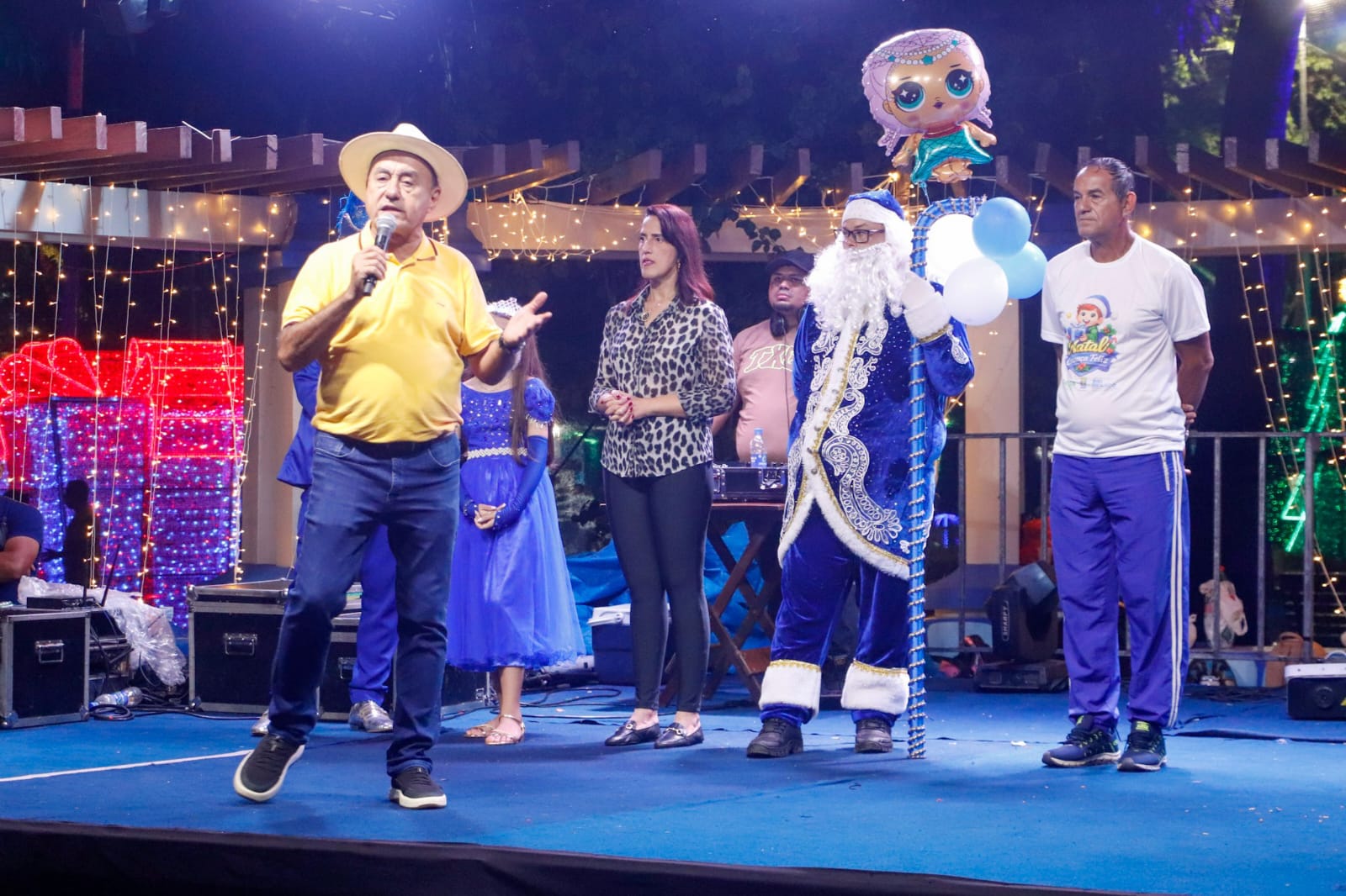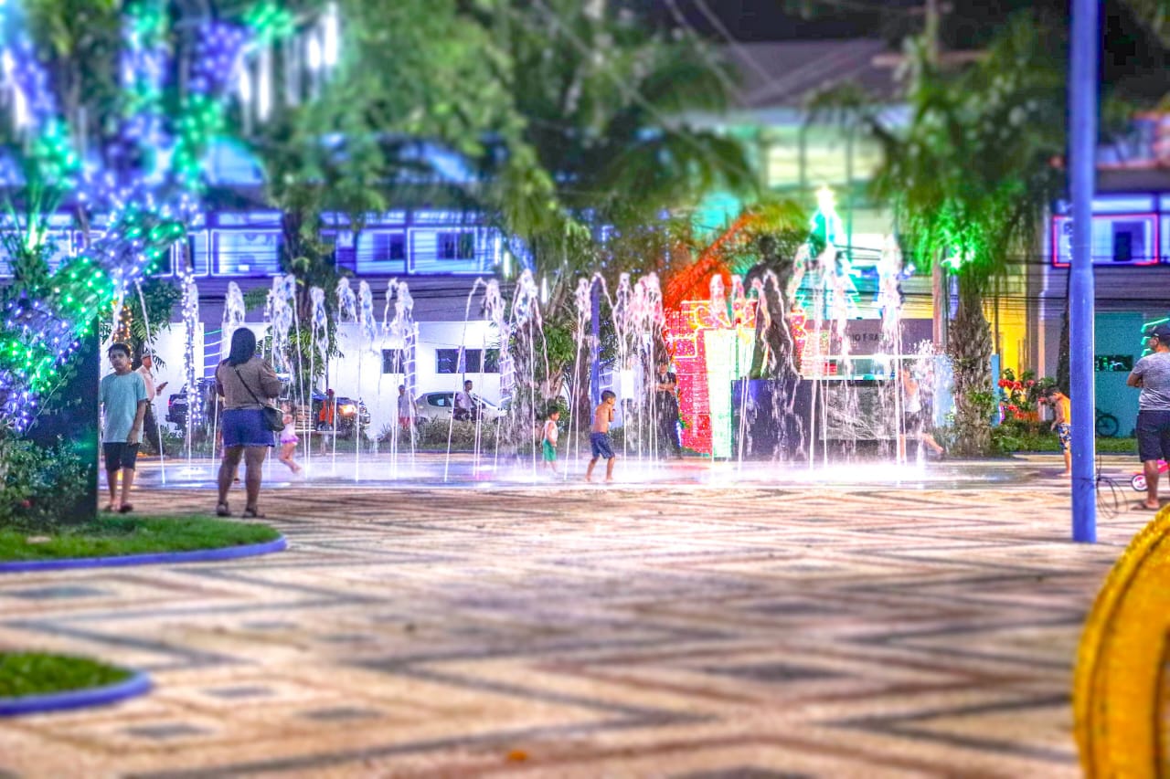 Entre os destaques da programação esteve a fonte interativa, construída pela Prefeitura de Rio Branco, que se tornou uma das atrações mais visitadas por crianças e adultos. O prefeito e a primeira-dama também participaram do momento de descontração, interagindo com o público e reforçando o clima de proximidade e alegria que marcou toda a programação natalina.