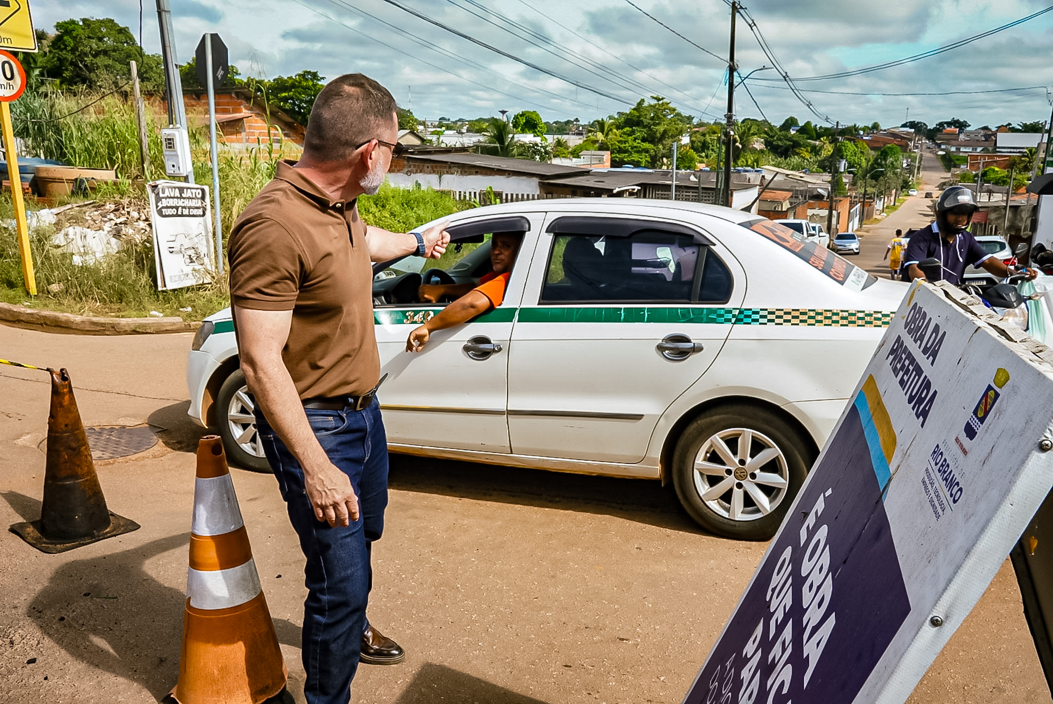 Foto do prefeito vendo a obra de recuperação no bairro Placas