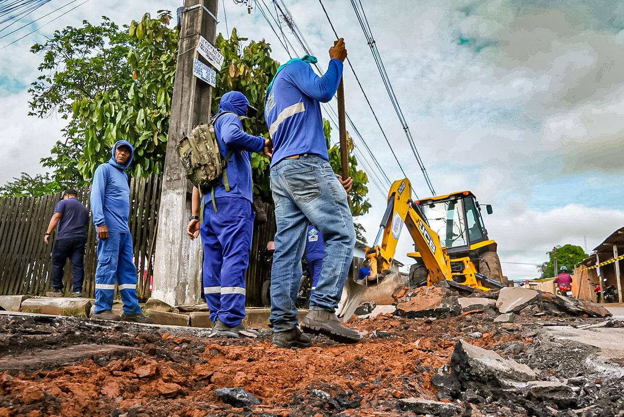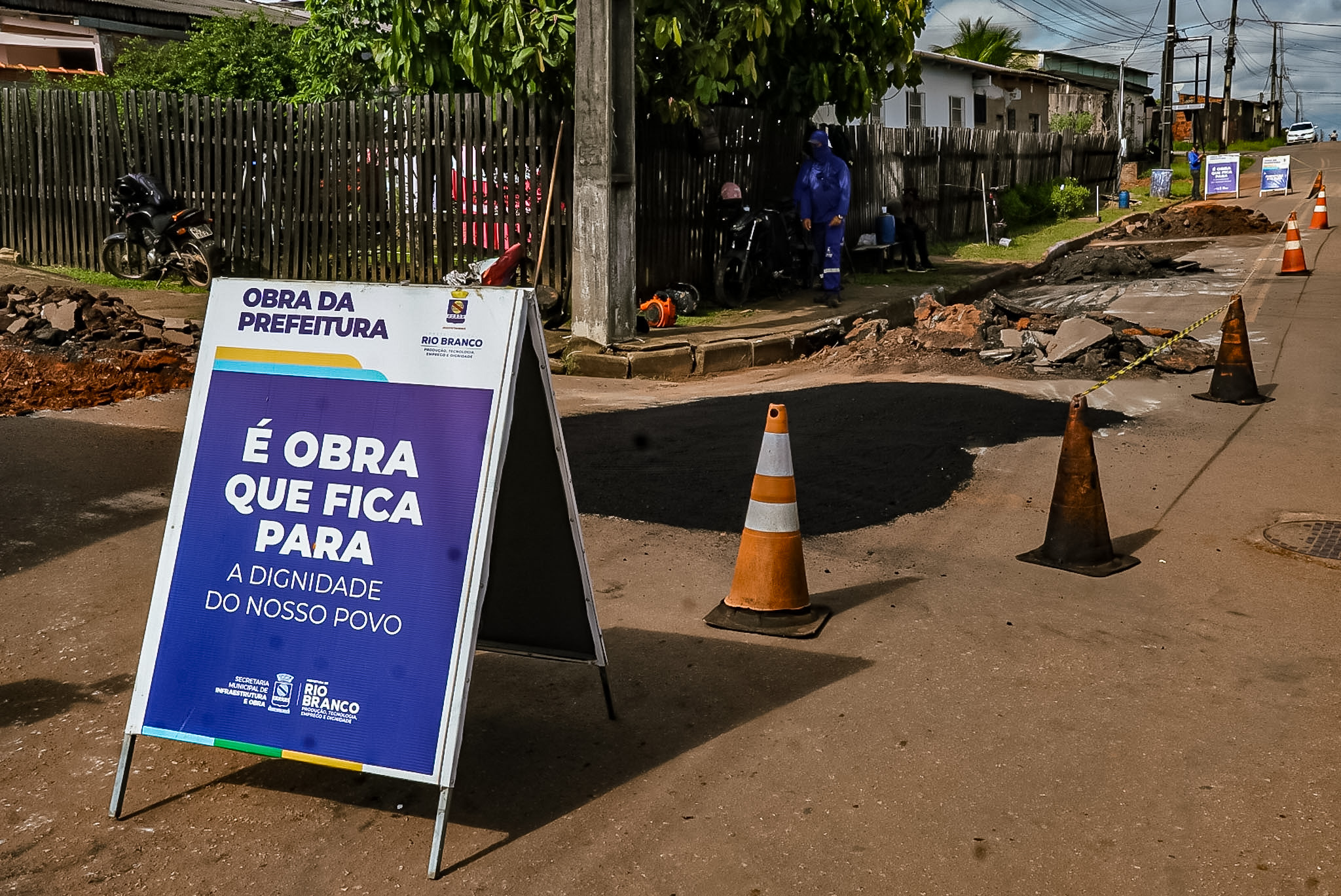 Foto da obra sendo realizada no bairro Placas