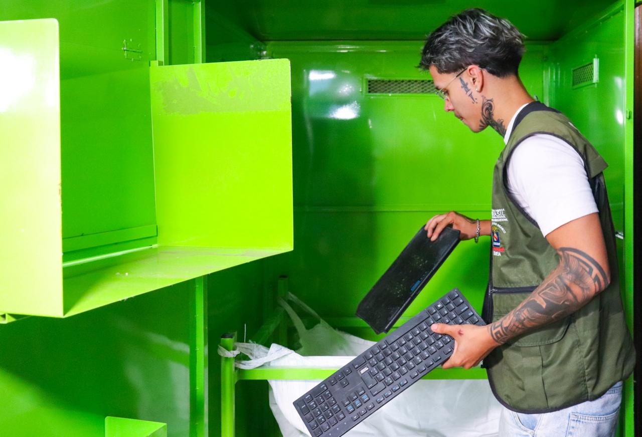 A iniciativa consiste na instalação de novos pontos de coleta para resíduos especiais, incluindo pilhas, baterias, lâmpadas e pequenos eletroeletrônicos. (Foto: Vitória Souza/Secom)
