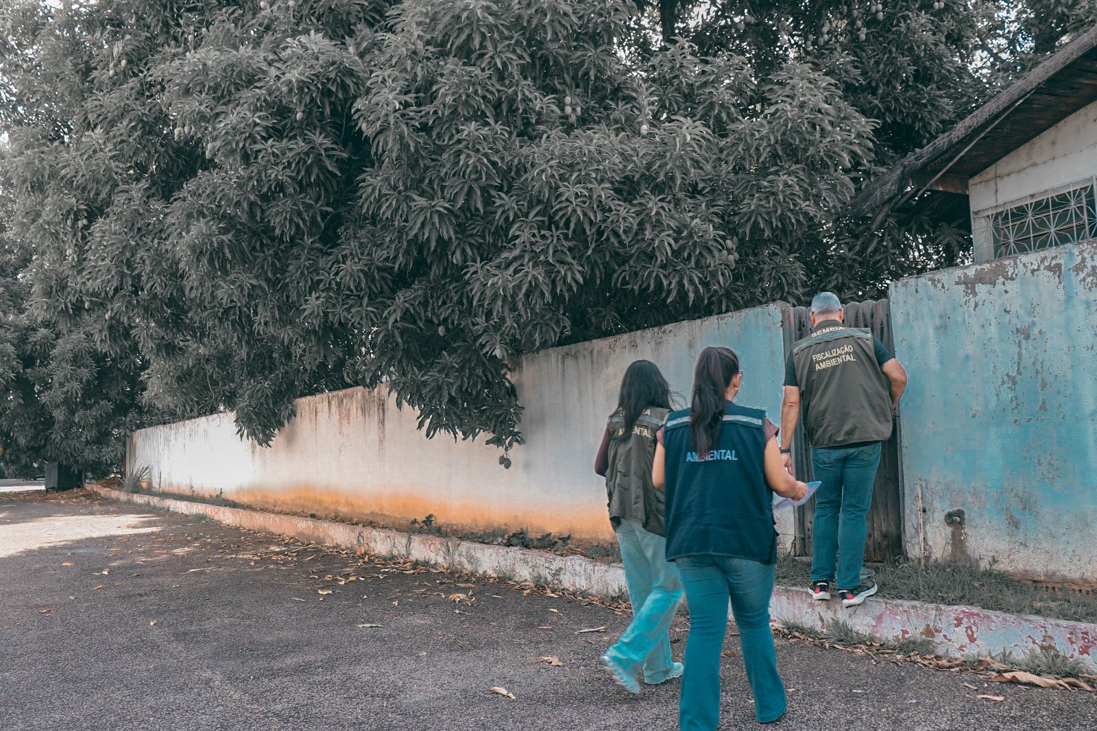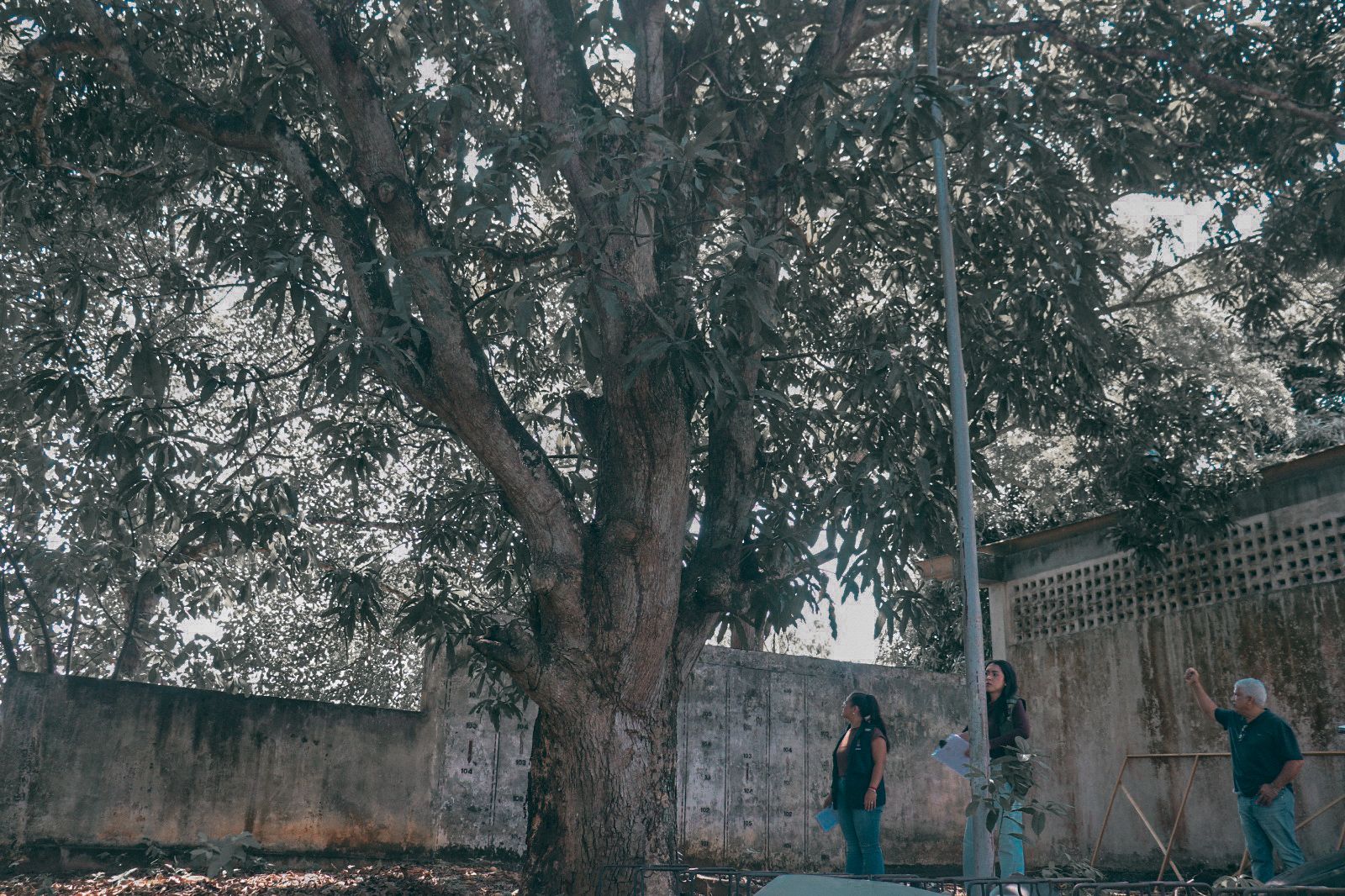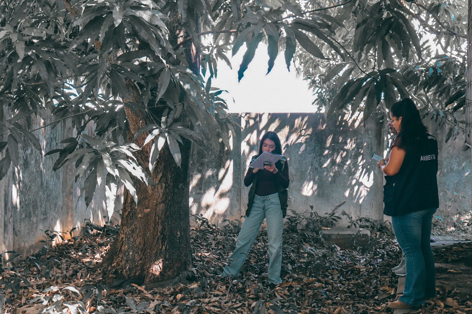O objetivo da ação foi avaliar o estado de saúde das espécies e identificar possíveis riscos à estrutura do prédio e à segurança das pessoas que circulam pelo local. (Foto: Vitória Souza/Secom)