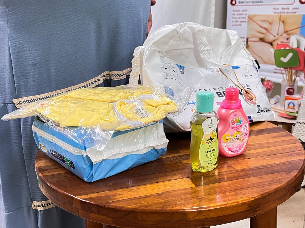 Como gesto simbólico de cuidado e valorização das mães, a Prefeitura de Rio Branco realizou a entrega de bolsas bebês às gestantes presentes, que contém um pacote de fralda, uma colônia, um shampoo suave e uma saída de maternidade.