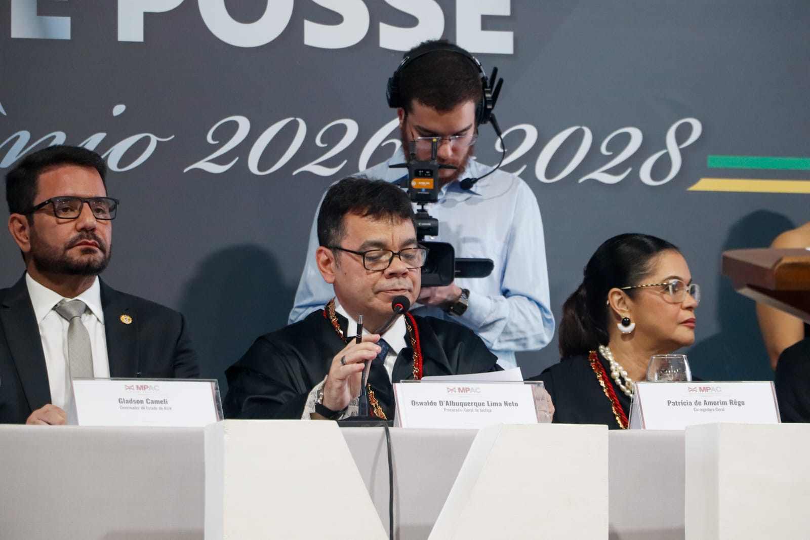Na noite da última sexta-feira (30), o Ministério Público do Estado do Acre (MPAC) realizou sessão solene de posse da nova administração para o biênio 2026-2028. A sessão solene aconteceu no auditório do Detran, em Rio Branco, e reuniu autoridades dos poderes Executivo, Legislativo e Judiciário, além de membros, servidores e convidados, entre eles, o Prefeito de Rio Branco, Tião Bocalom.