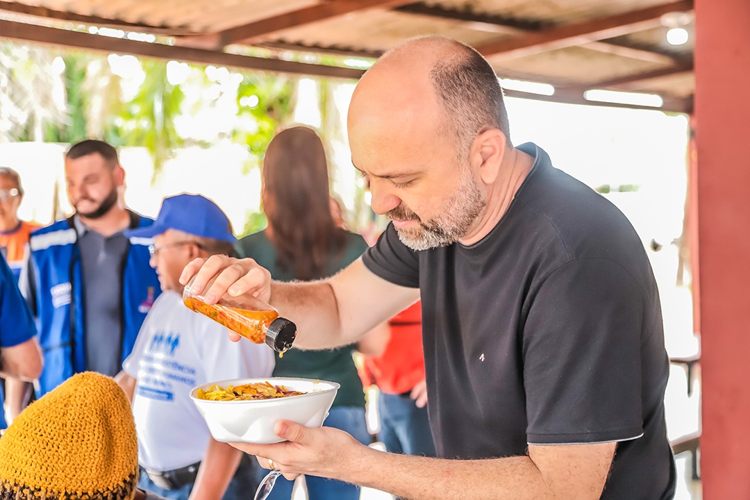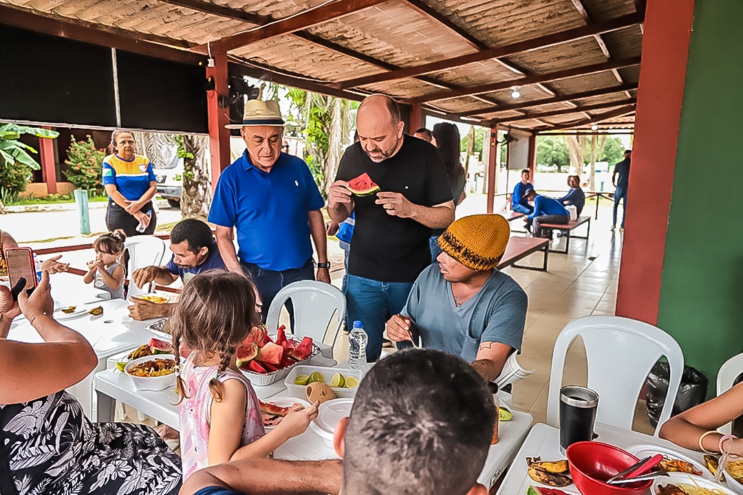 Durante a visita, o gestor percorreu os espaços do abrigo, conversou com os abrigados ouviu demandas e aproveitou o momento para almoçar junto às famílias, reforçando o compromisso da gestão com o cuidado e a atenção às pessoas atingidas pela cheia.