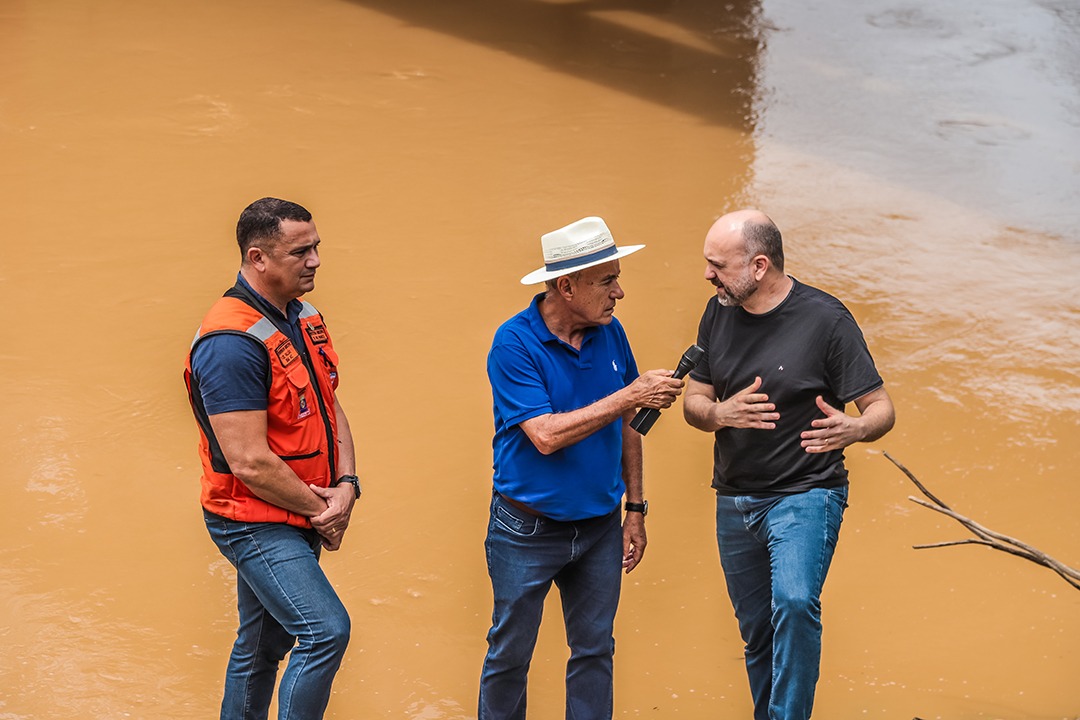 Demonstrando envolvimento direto com a situação, o prefeito também registrou informações e compartilhou atualizações, reforçando a transparência das ações e o acompanhamento contínuo da Prefeitura no enfrentamento aos impactos da cheia.