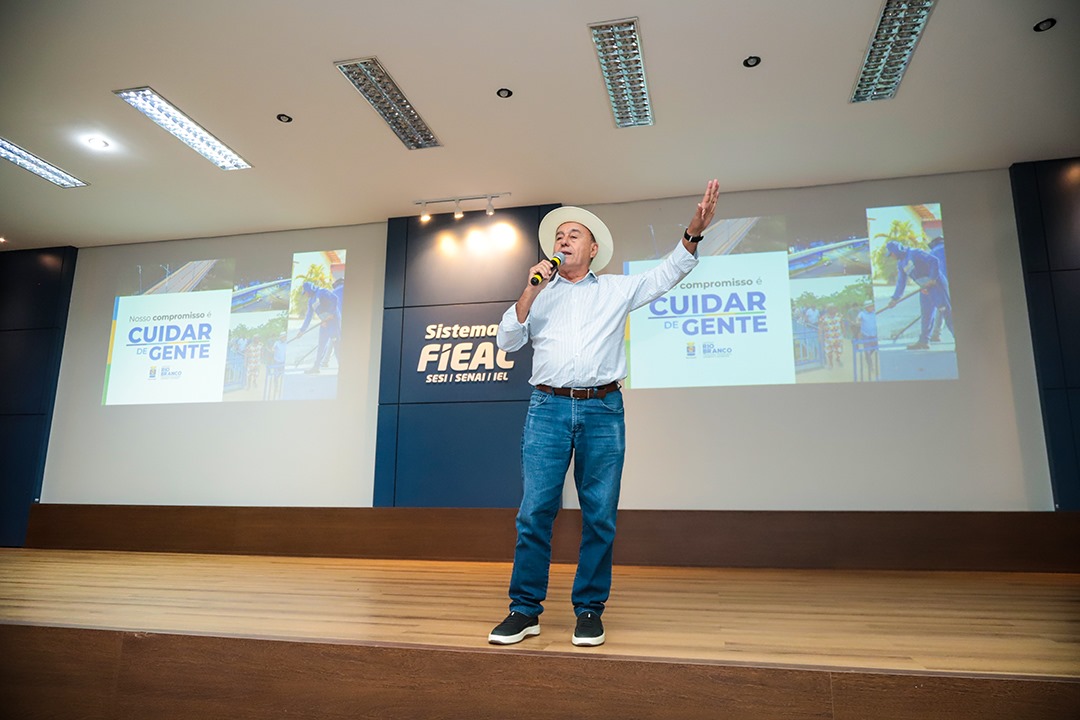 “Estava falando com o ministro das Cidades, Jader Filho, sobre o viaduto da AABB. Ele disse que a obra não parou porque a Prefeitura de Rio Branco, o prefeito é um homem austero, sério, e está bancando, com recursos próprios, enquanto aguarda o repasse federal. Isso é um exemplo. A comunidade precisa de exemplos inspiradores”, evidência.