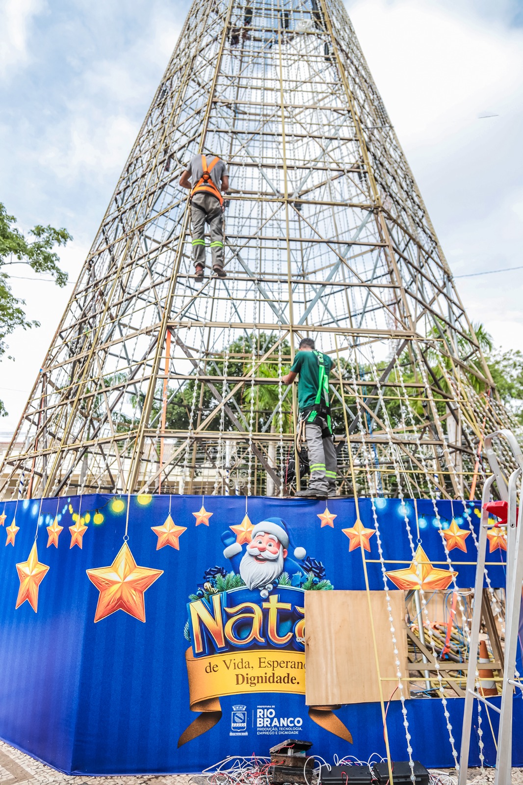 A Prefeitura de Rio Branco, por meio da Secretaria Municipal de Infraestrutura e Mobilidade Urbana, deu início na manhã desta terça-feira (13), à retirada e desmontagem da decoração do Natal de Vida, Esperança e Dignidade, instalada na Praça da Revolução. O evento natalino, que marcou o calendário cultural da capital acreana, foi realizado entre os dias 7 de dezembro de 2025 e 11 de janeiro de 2026, reunindo milhares de famílias durante mais de um mês de programação especial.