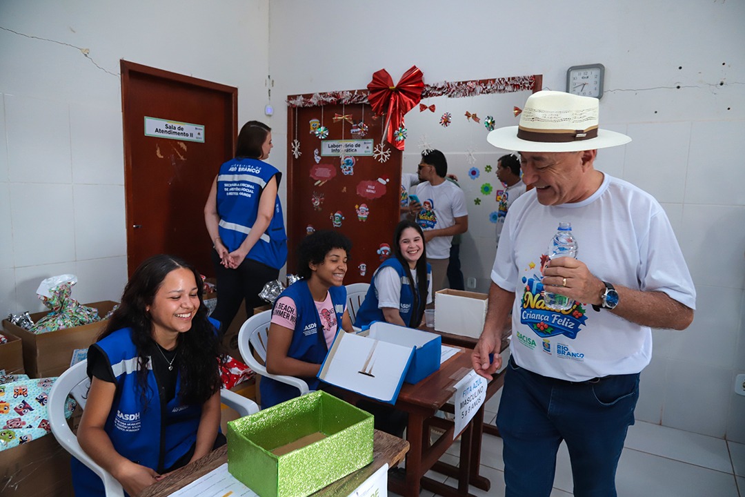 “Sabemos que muitas famílias atendidas por programas como o Bolsa Família não têm condições de comprar um presente para seus filhos. Muitas crianças ficam esperando o Papai Noel, que muitas vezes não chega. Mas este ano ele está chegando por meio da Prefeitura de Rio Branco, com o apoio do nosso vice-prefeito Alysson, da primeira-dama Kelen, do nosso amigo Ivan, do João Marcos e de toda a equipe da Assistência Social. Até terça-feira, estaremos entregando mais de 50 mil presentes”, enfatizou.