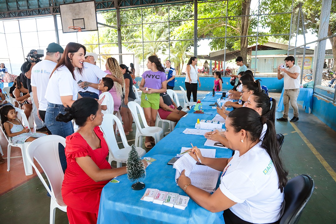 Após a ação no Rui Lino, a comitiva seguiu para o bairro Cidade Nova, onde a programação continuou com entrega de presentes. (Foto: Val Fernandes/Secom)