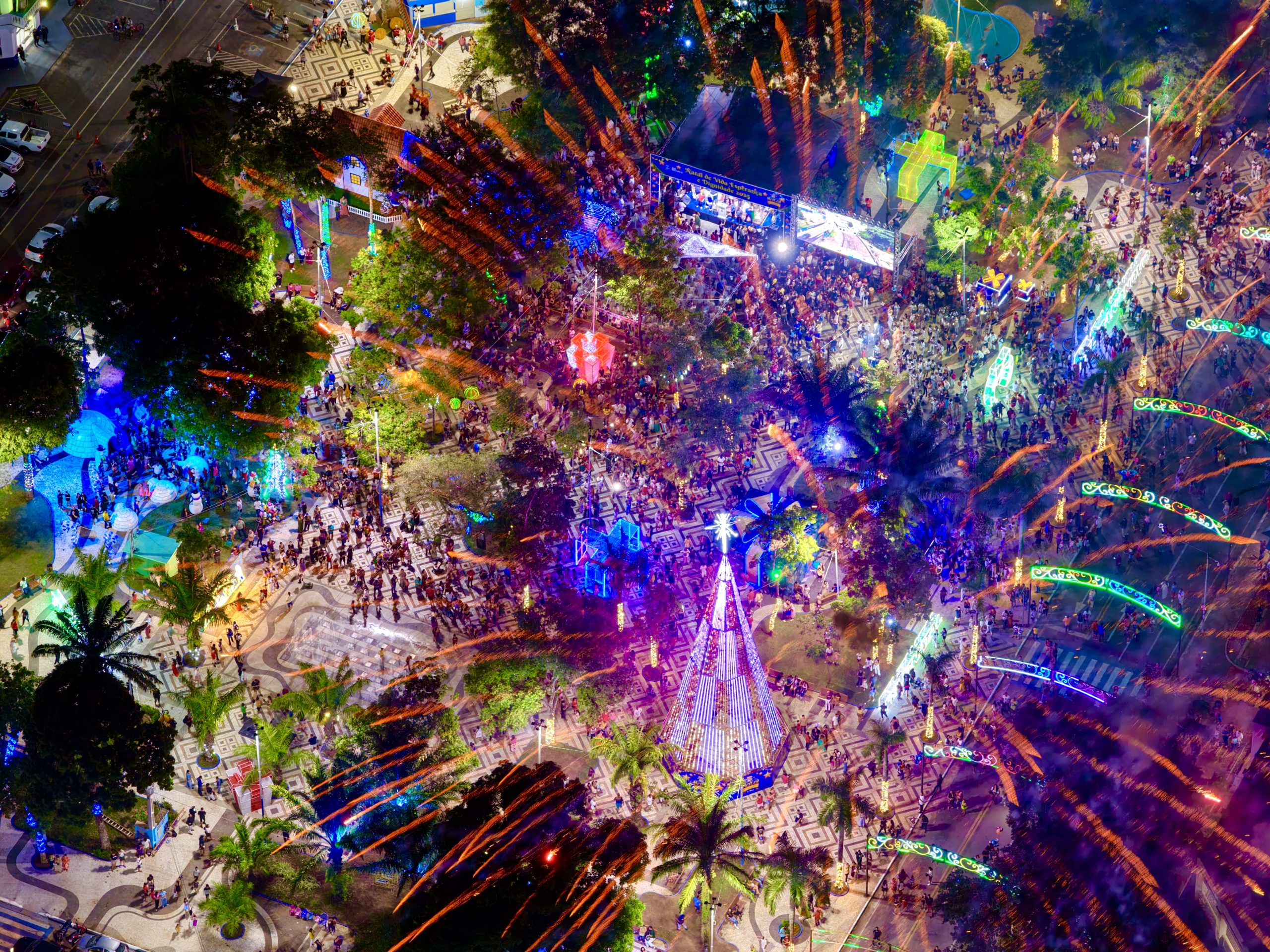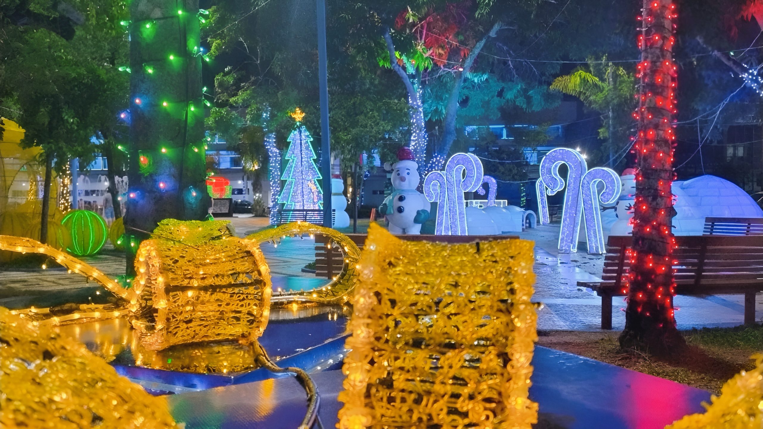 As imagens registraram espaços públicos decorados pela Prefeitura, como praças, avenidas, rotatórias e o Horto Florestal, evidenciando o cuidado com a cidade durante o Natal. (Foto: Marcos Araújo/Secom)