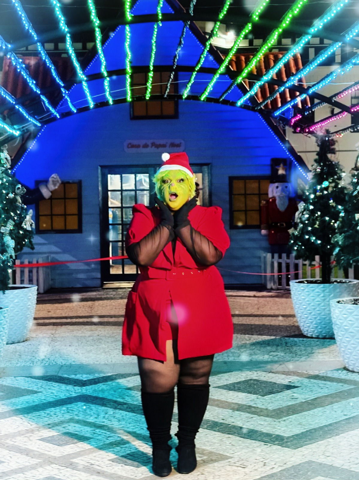 “Eu costumo gravar conteúdos para a internet e tive a ideia de usar um personagem muito conhecido no Natal, o Grinch. Fiz uma maquiagem artística, vim para a praça e tirei a foto. Pedi apoio dos seguidores e fiquei na expectativa. Amei toda essa experiência, foi incrível”, relatou Raquel.