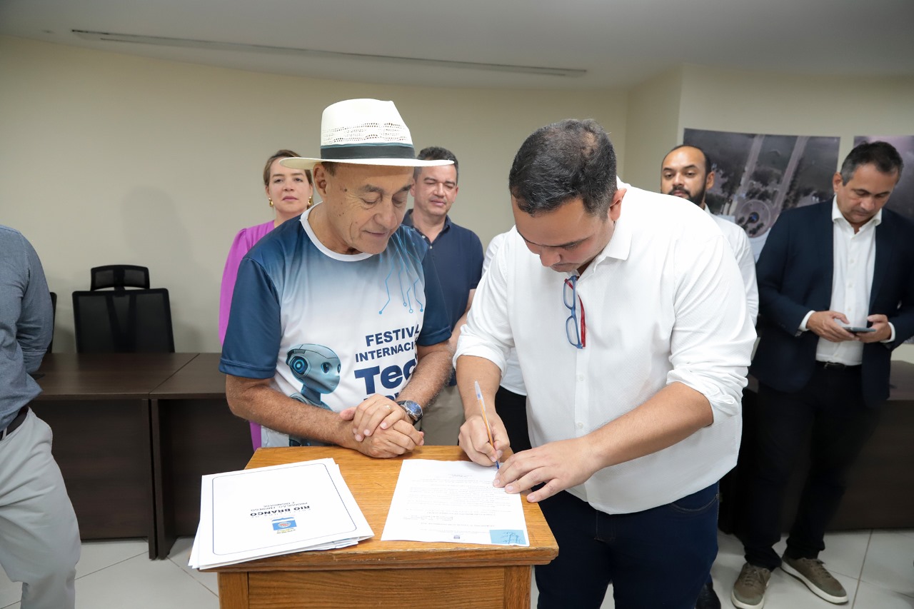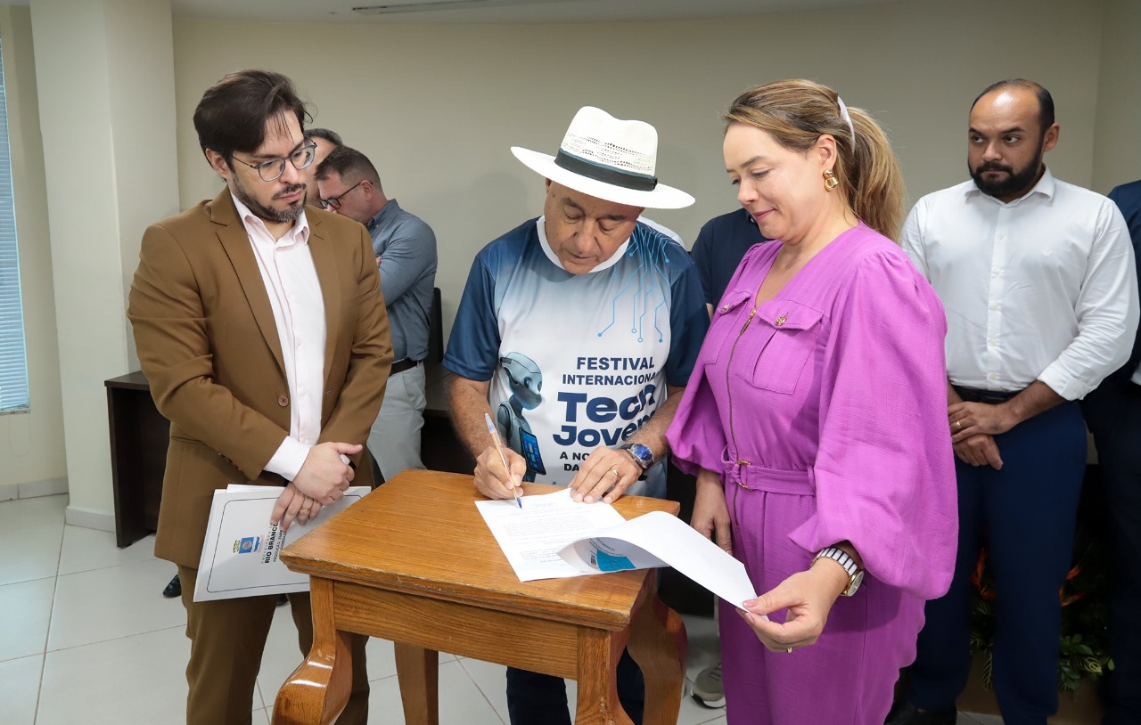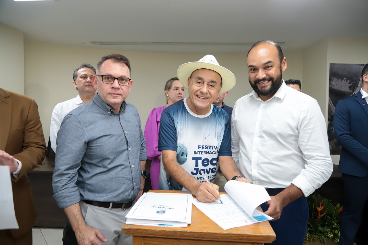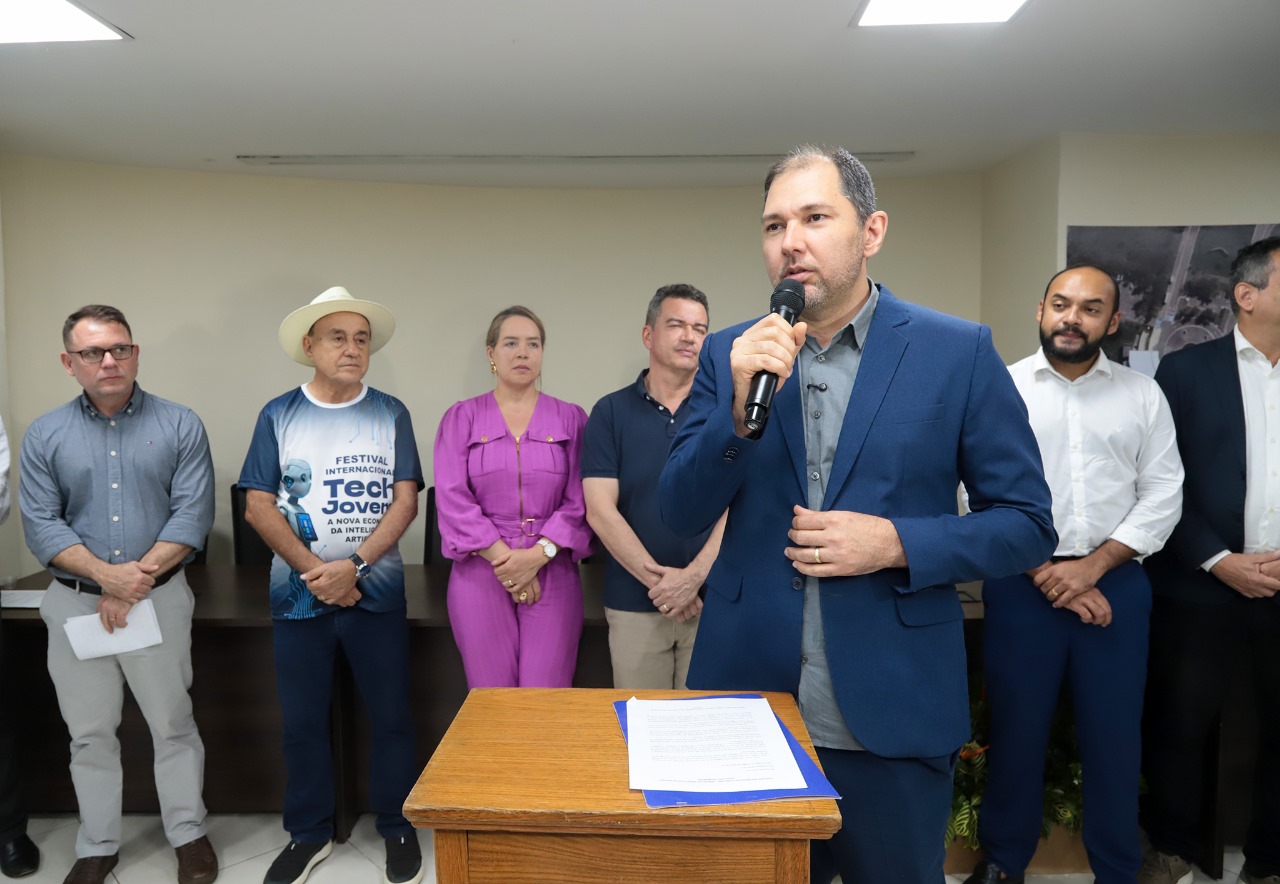 Outra lei também sancionada foi a lei nº 2.597, que institui a Semana do Brincar no Município de Rio Branco, de autoria do vereador e presidente da Câmara de Vereadores, Joabe Lira. (Foto: Val Fernandes/Secom)