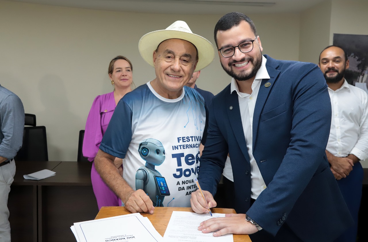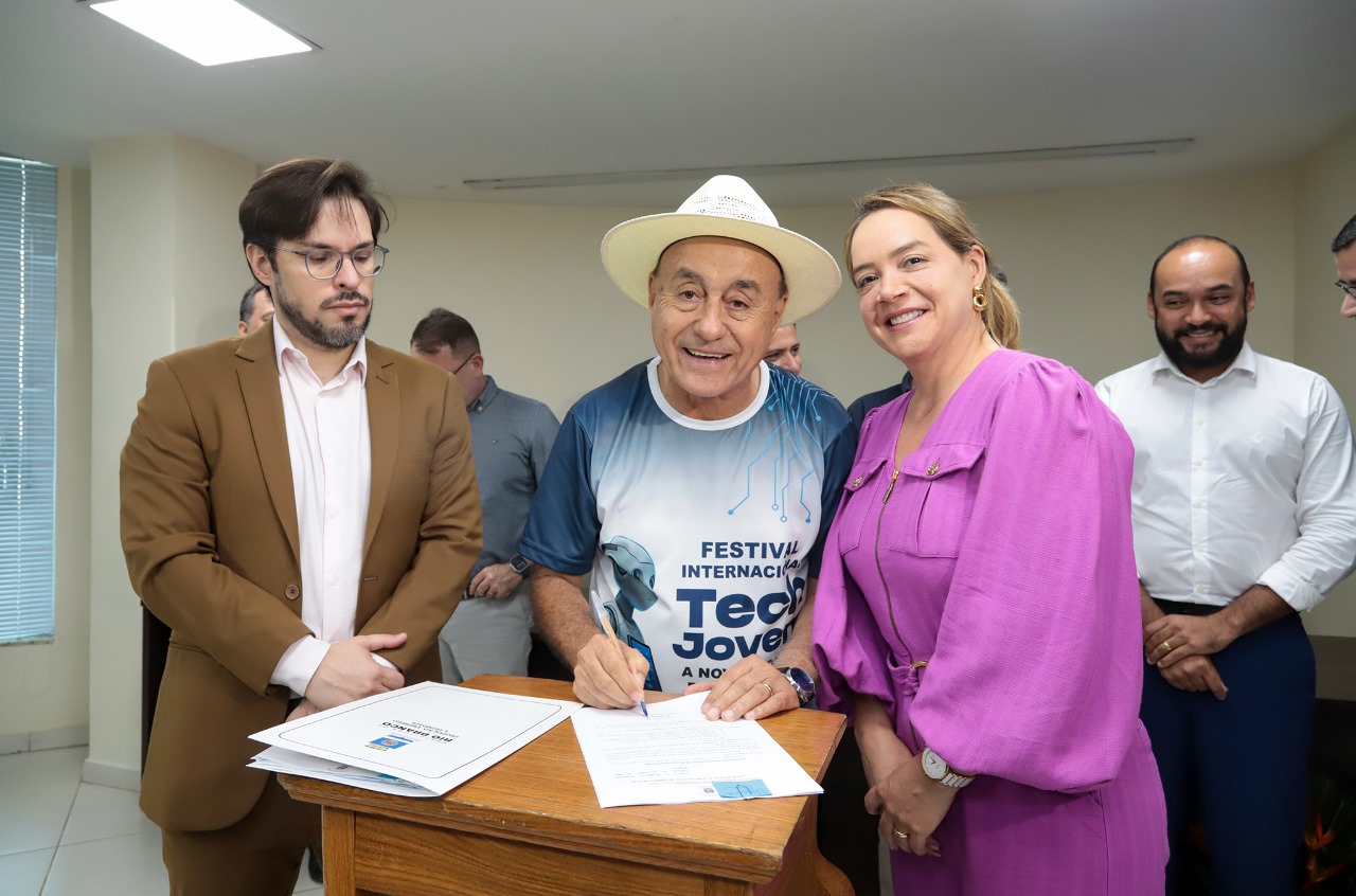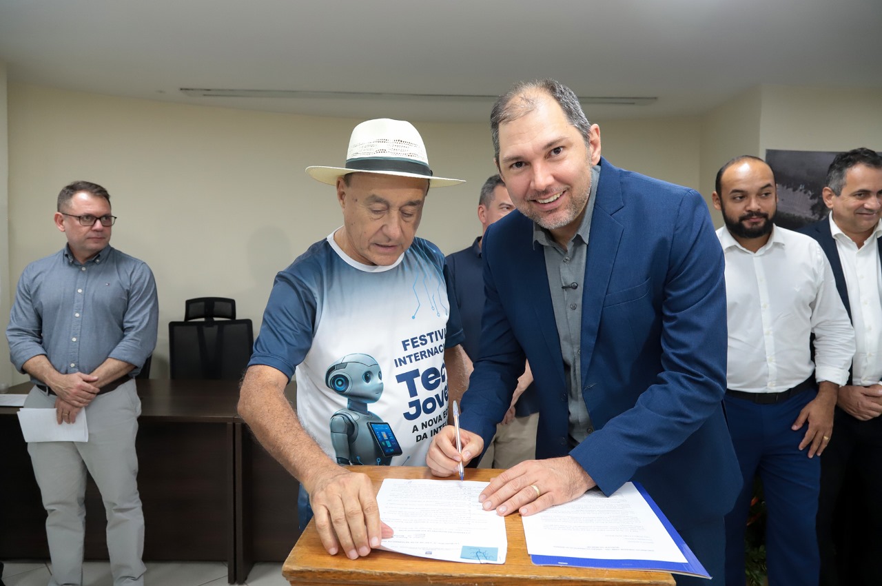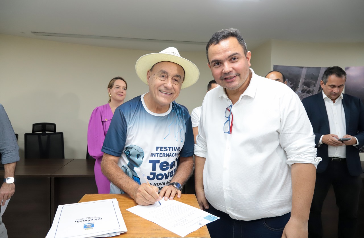 Outra lei também sancionada foi a lei nº 2.597, que institui a Semana do Brincar no Município de Rio Branco, de autoria do vereador e presidente da Câmara de Vereadores, Joabe Lira. (Foto: Val Fernandes/Secom)