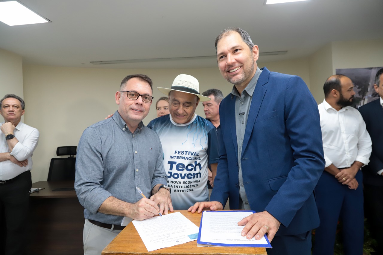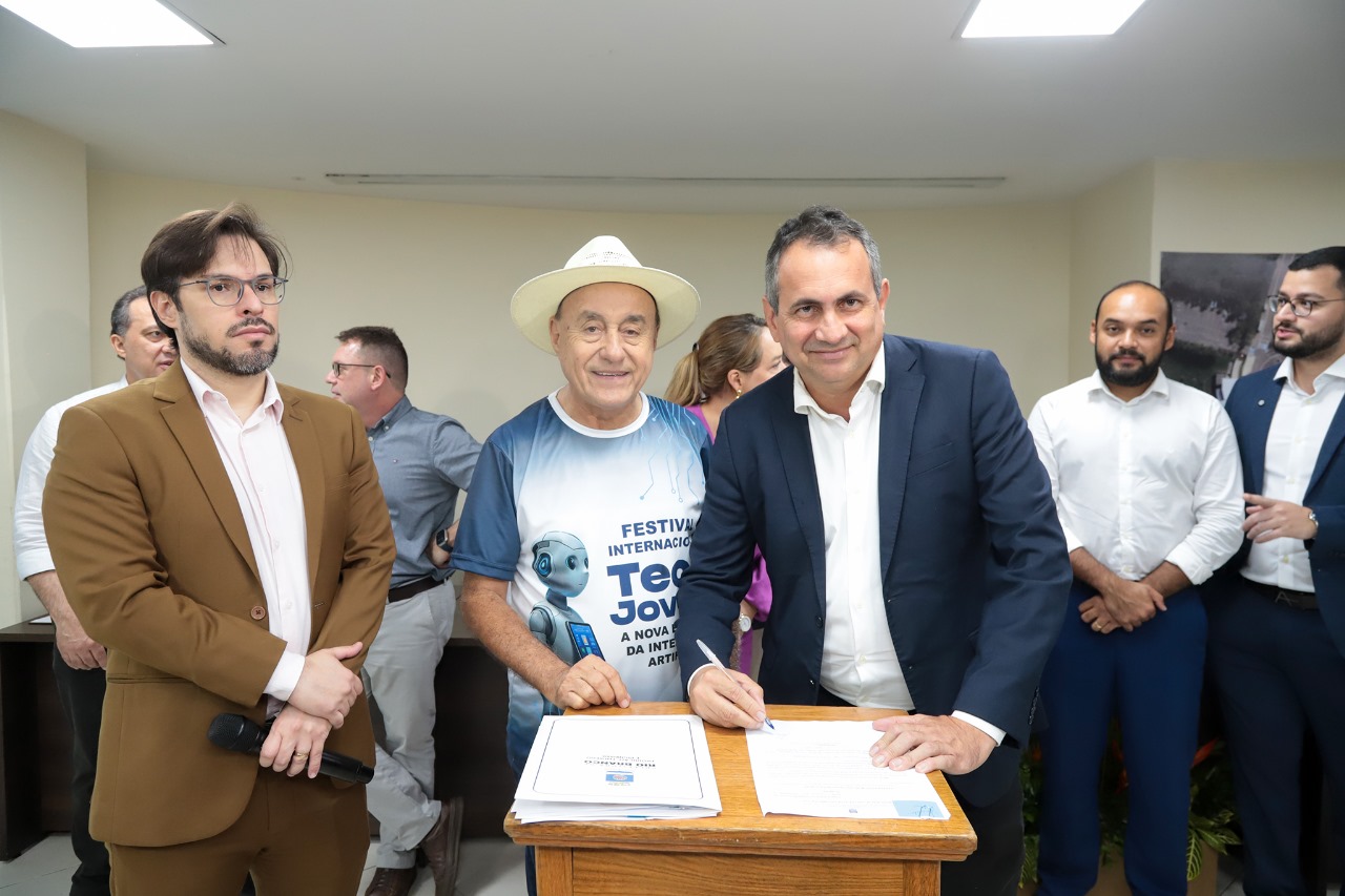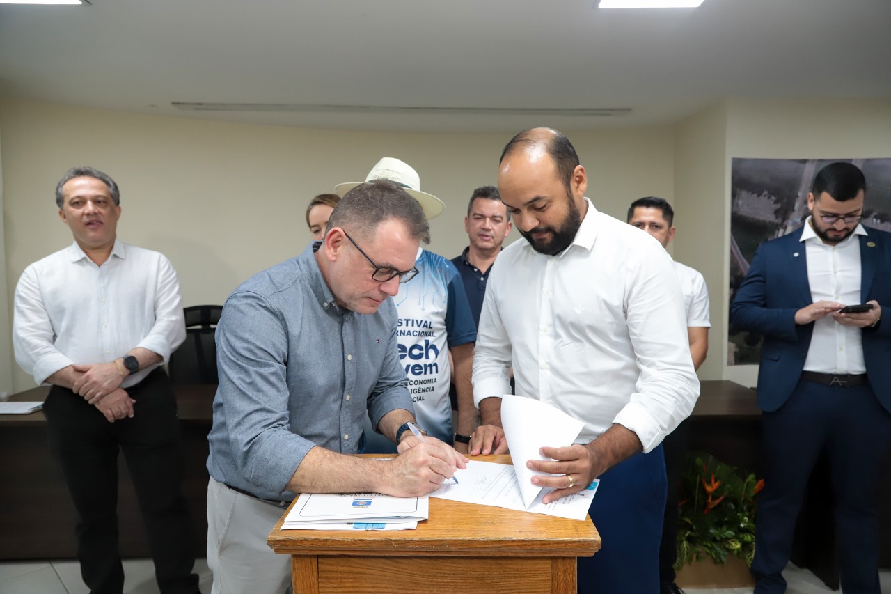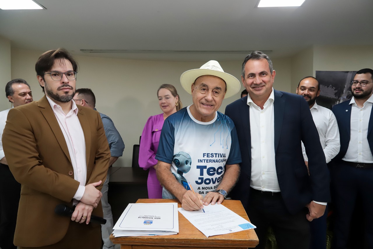 Outra lei também sancionada foi a lei nº 2.597, que institui a Semana do Brincar no Município de Rio Branco, de autoria do vereador e presidente da Câmara de Vereadores, Joabe Lira. (Foto: Val Fernandes/Secom)