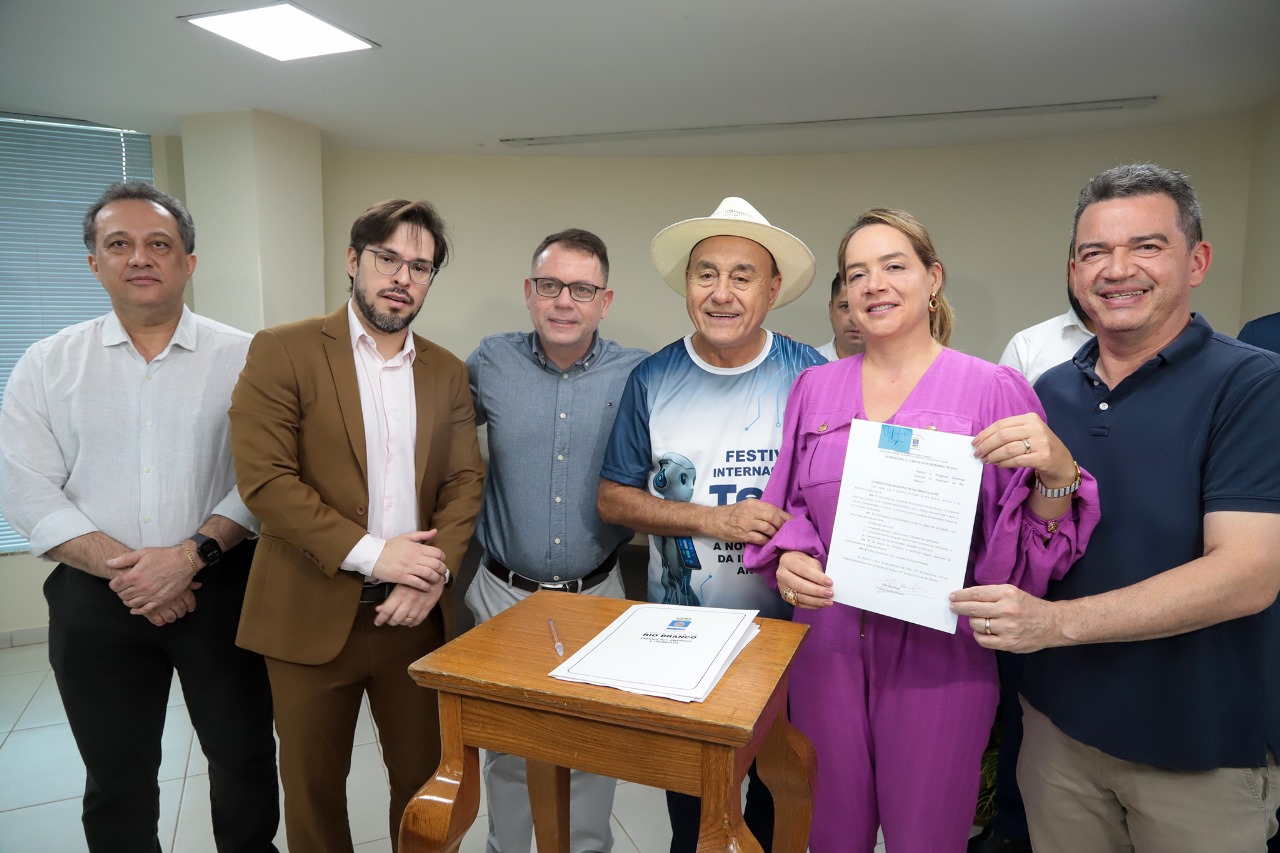 O prefeito de Rio Branco Tião Bocalom destacou a importância da parceria entre os poderes Legislativo e Executivo na criação de políticas públicas, ressaltando a importância dos projetos sancionados.