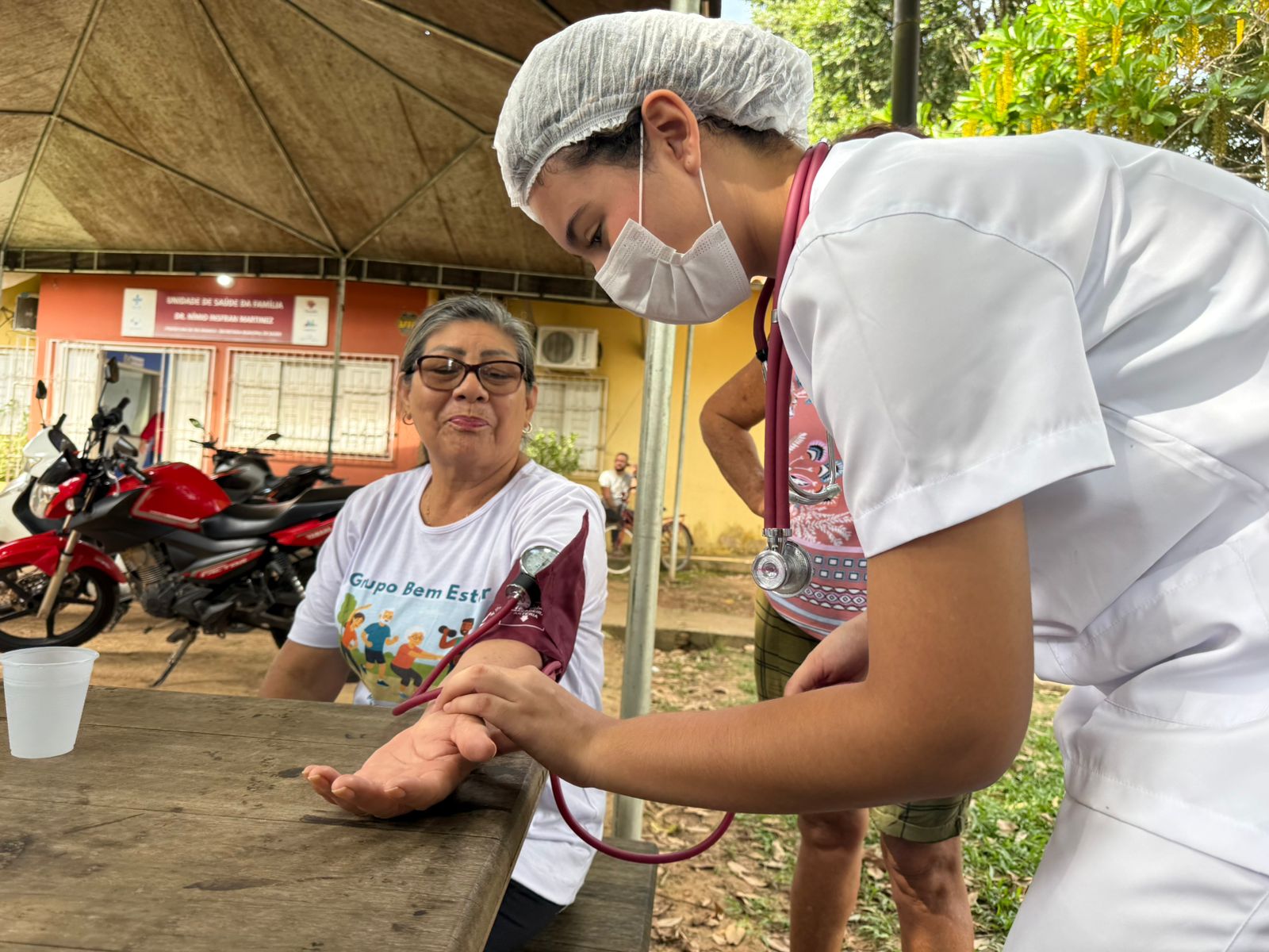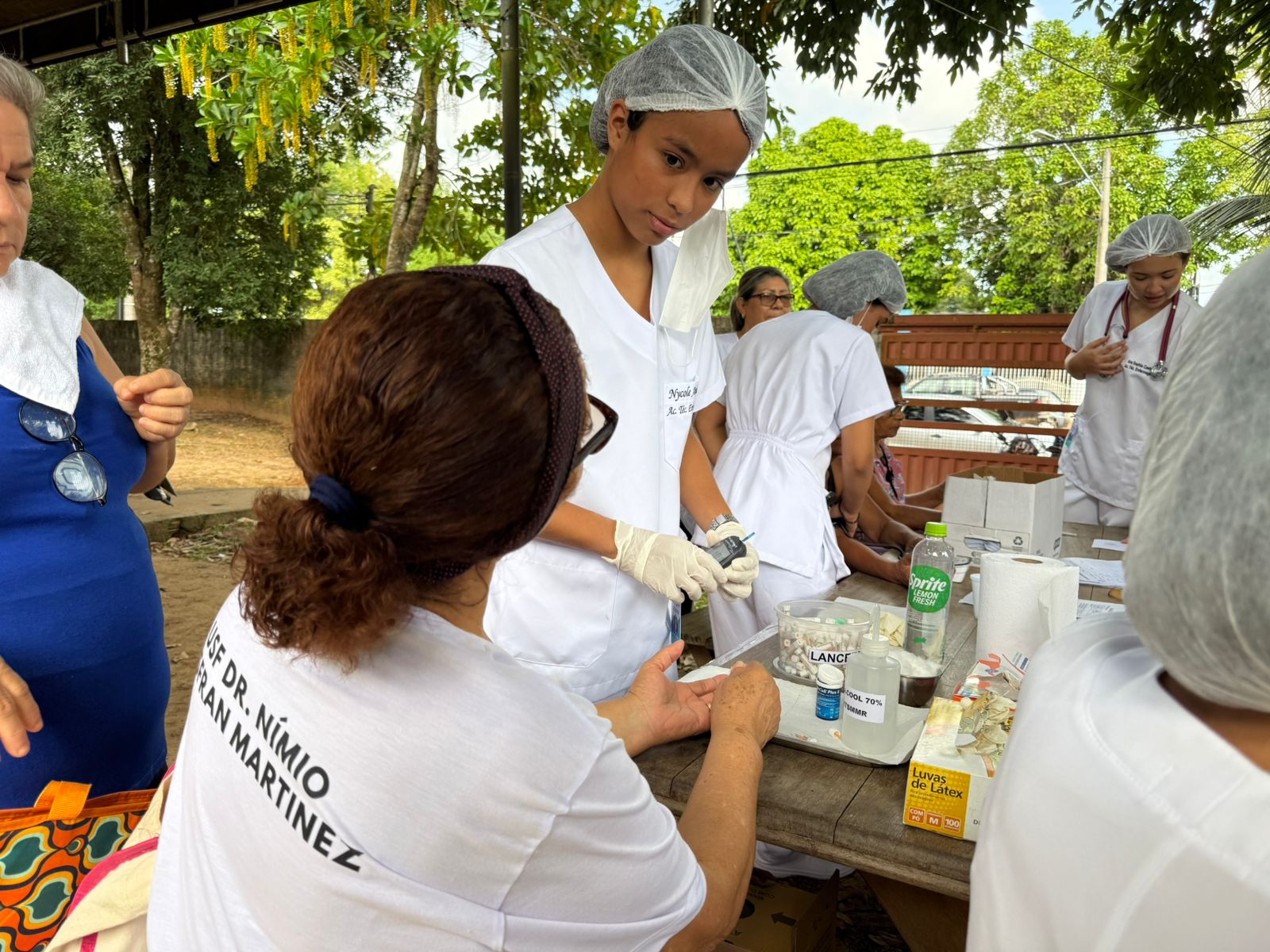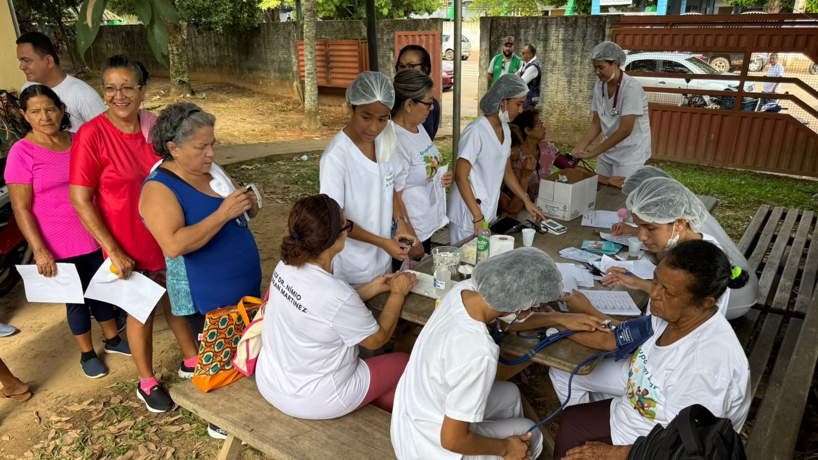 Durante o “Dia D”, foram ofertados diversos serviços de saúde à comunidade, incluindo aferição de pressão arterial, teste de glicemia, avaliação física com medição de peso, altura e circunferência abdominal, eletrocardiograma, exame de vista, práticas integrativas como auriculoterapia, além de orientações multiprofissionais.