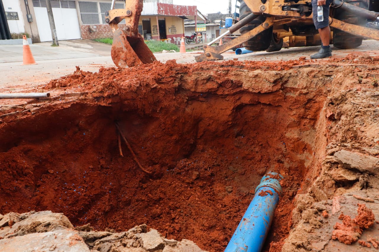 Prefeitura de Rio Branco realiza reparo em adutora na Avenida Sete de Setembro, no bairro Nova Esperança, visando melhorar o abastecimento de água na região