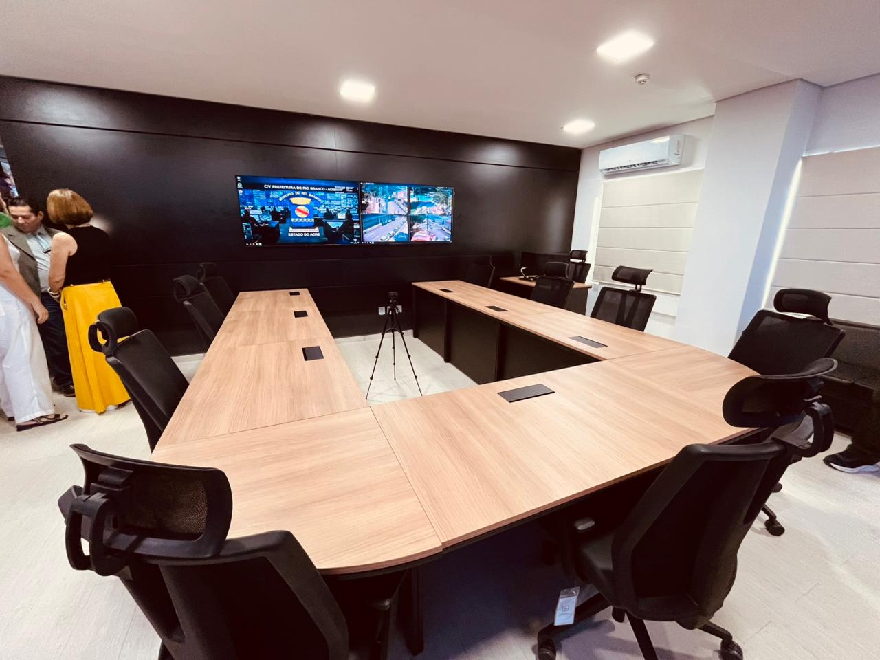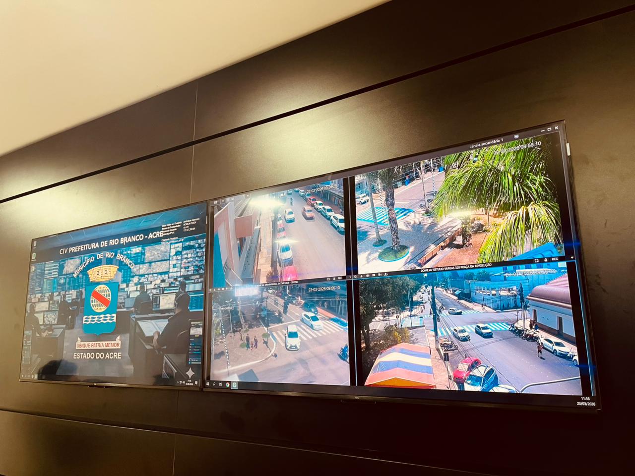 A Prefeitura de Rio Branco inaugurou, na manhã desta segunda-feira (23), uma moderna Sala de Videomonitoramento como parte do programa Rio Branco Mais Segura. A estrutura conta com 450 câmeras de alta tecnologia, capazes de realizar identificação facial e veicular em tempo real, ampliando as ações de prevenção e investigação criminal na capital acreana.