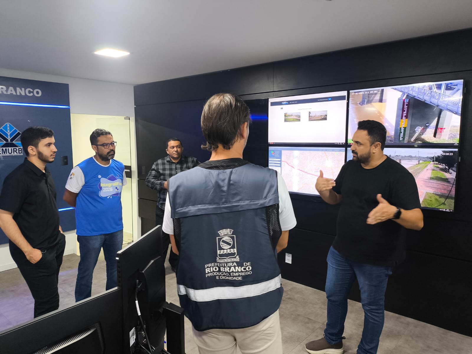 A Prefeitura de Rio Branco recebeu, na sala de videomonitoramento do município, na manhã desta sexta-feira (27), a visita técnica de representantes da Universidade Federal do Acre, interessados em conhecer de perto o funcionamento do sistema utilizado pela gestão municipal. O modelo, considerado inédito no estado, tem se destacado pelo uso de tecnologia para reforçar a segurança pública, o ordenamento urbano e o acompanhamento de obras e do trânsito na capital.