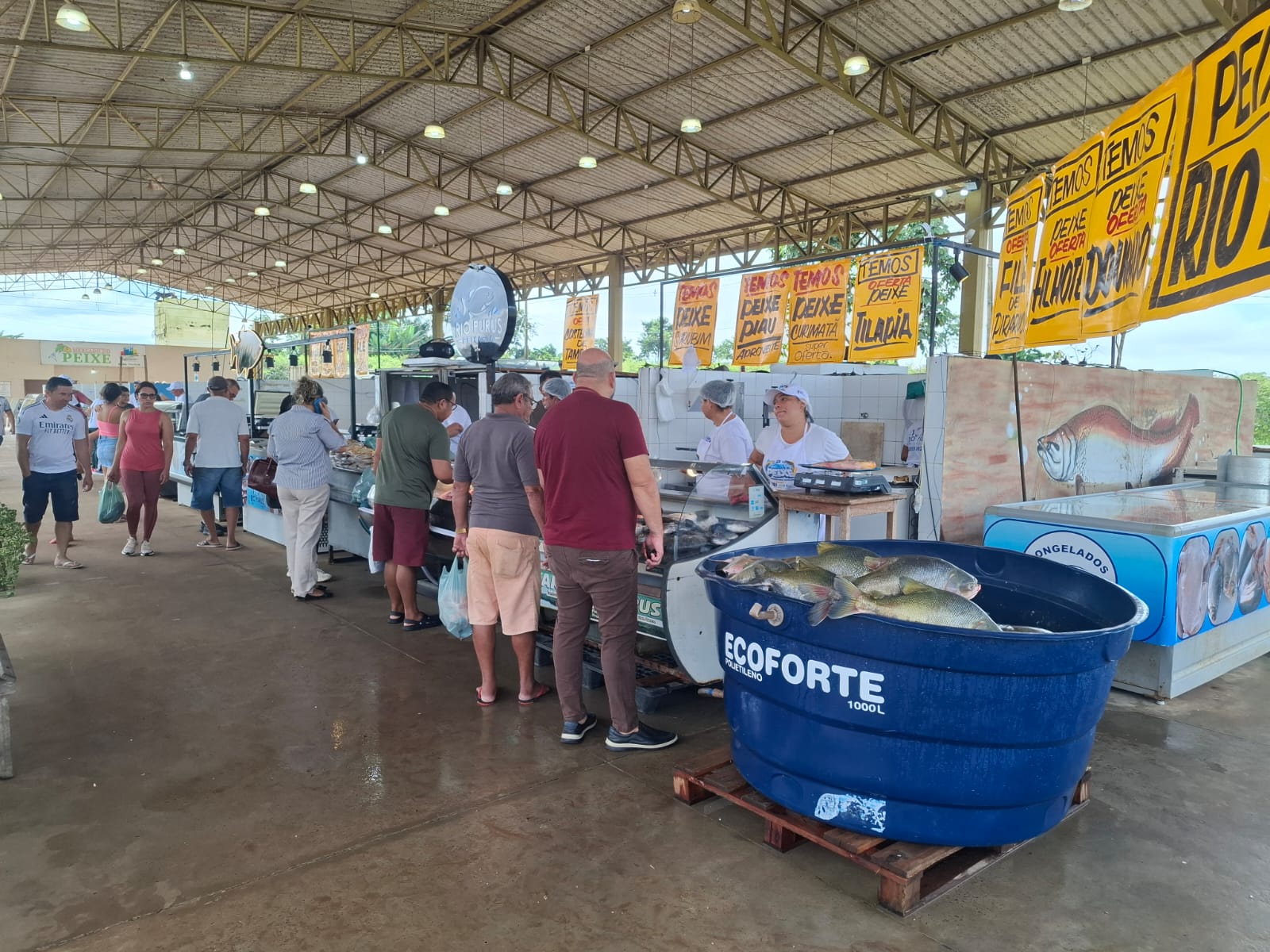 Na parte alta da cidade, no bairro São Francisco, os consumidores também têm a opção de adquirir o peixe vivo e solicitar o abate na hora. O piscicultor Mark Ideleon estima comercializar cerca de duas toneladas de pescado durante o evento.