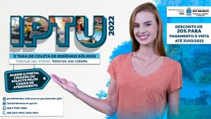 Pagamento da cota única ou primeira parcela do IPTU 2022 encerra nesta quinta-feira 30 de março de 2022