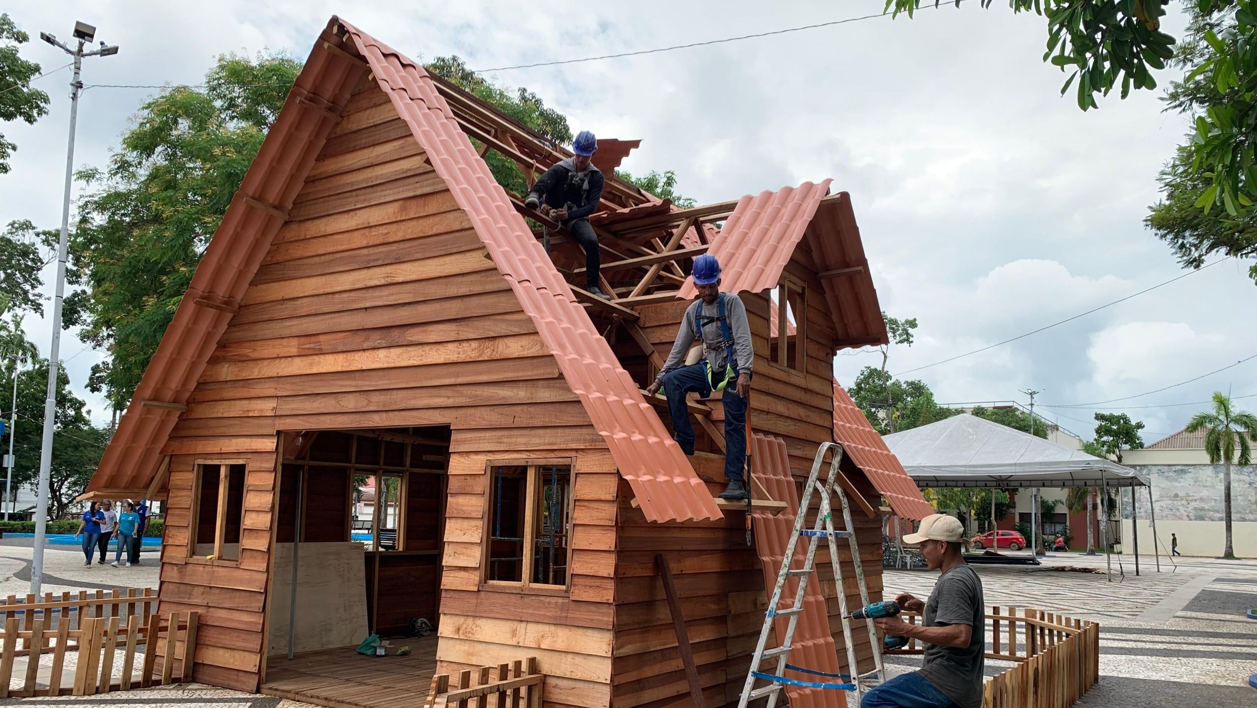 A movimentação na Praça da Revolução já chama a atenção de quem passa pelo local. O autônomo Carlos Afonso Batista aproveitou a folga para levar os netos Eloá e Carlos para acompanhar a construção da tradicional Casinha do Papai Noel, uma das atrações mais esperadas do Natal.