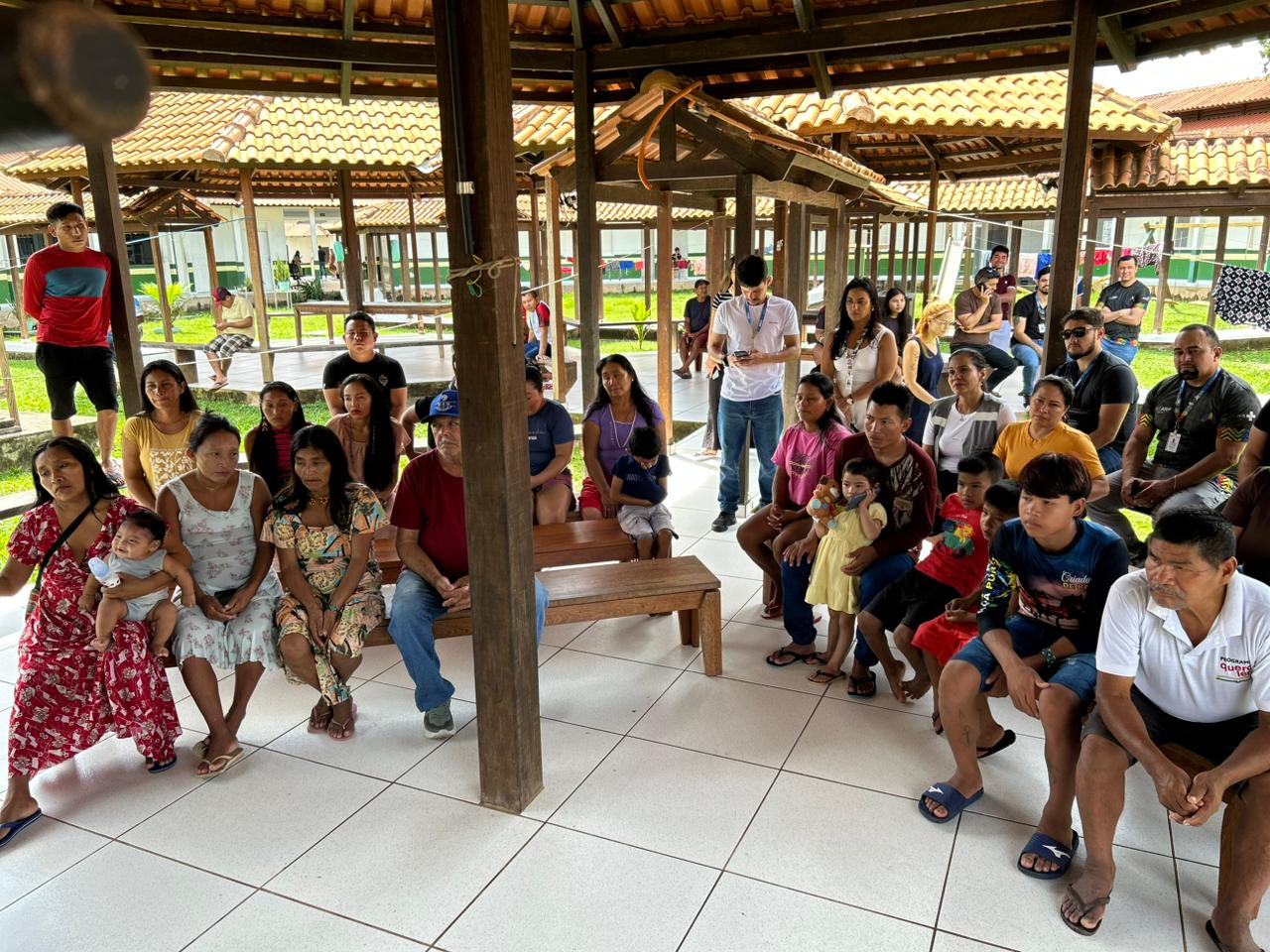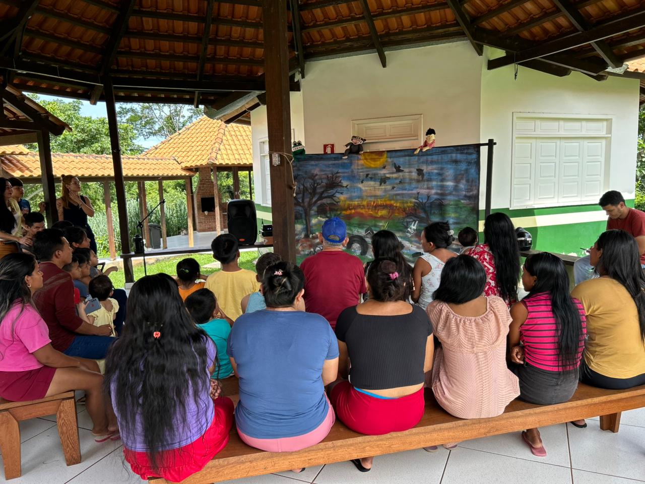A ação contou com a participação da Escola de Educação Ambiental do Horto Florestal, que apresentou o Teatro de Bonecos “Memórias de um Igarapé Limpinho”, atividade lúdica que abordou a importância do cuidado com a água, com o meio ambiente e com os territórios. A programação incluiu ainda cantos musicais, fortalecendo o acolhimento e a troca de saberes com o público indígena.