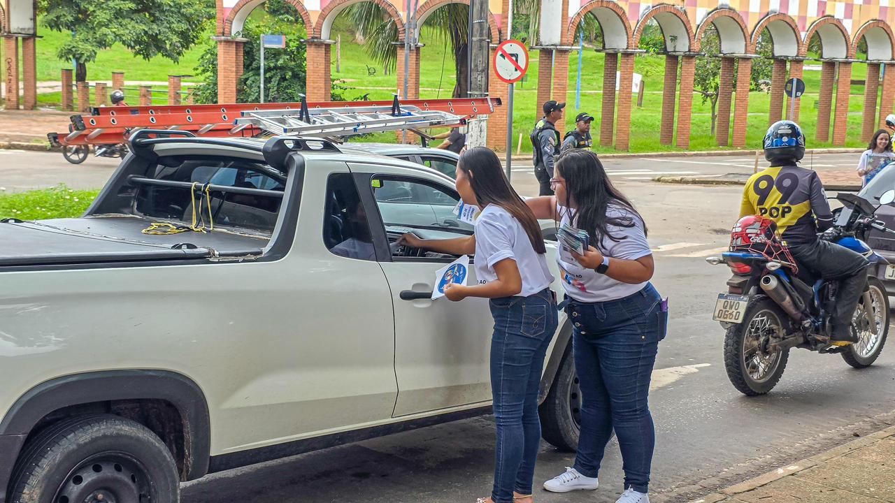 Durante a mobilização, orientações, distribuição de materiais informativos e abordagens educativas ganharam espaço nas ruas de Rio Branco, promovendo um momento de escuta ativa e conscientização.