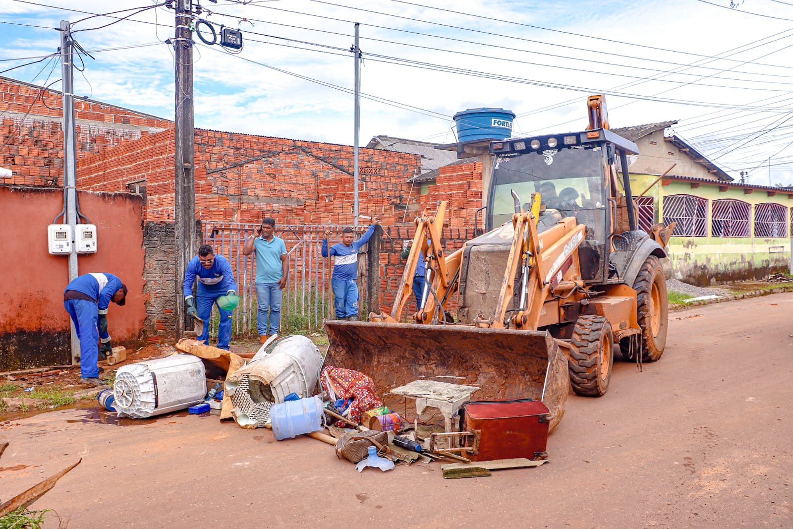 A Prefeitura de Rio Branco, por meio da Secretaria Municipal de Cuidados com a Cidade, mobilizou, na manhã desta sexta-feira (17), um verdadeiro exército de trabalhadores, máquinas pesadas e caçambas para o mutirão de limpeza nos bairros da Baixada da Sobral, afetados pelas enxurradas dos últimos dias.