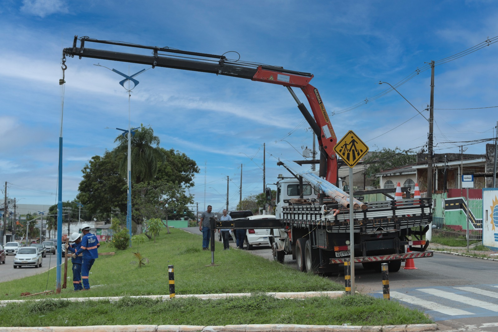 A Prefeitura de Rio Branco segue avançando na modernização da iluminação pública da capital acreana. Por meio da Secretaria Municipal de Cuidados com a Cidade, os trabalhos de implantação de novos postes de iluminação foram intensificados na Avenida Ceará, uma das principais vias da cidade.