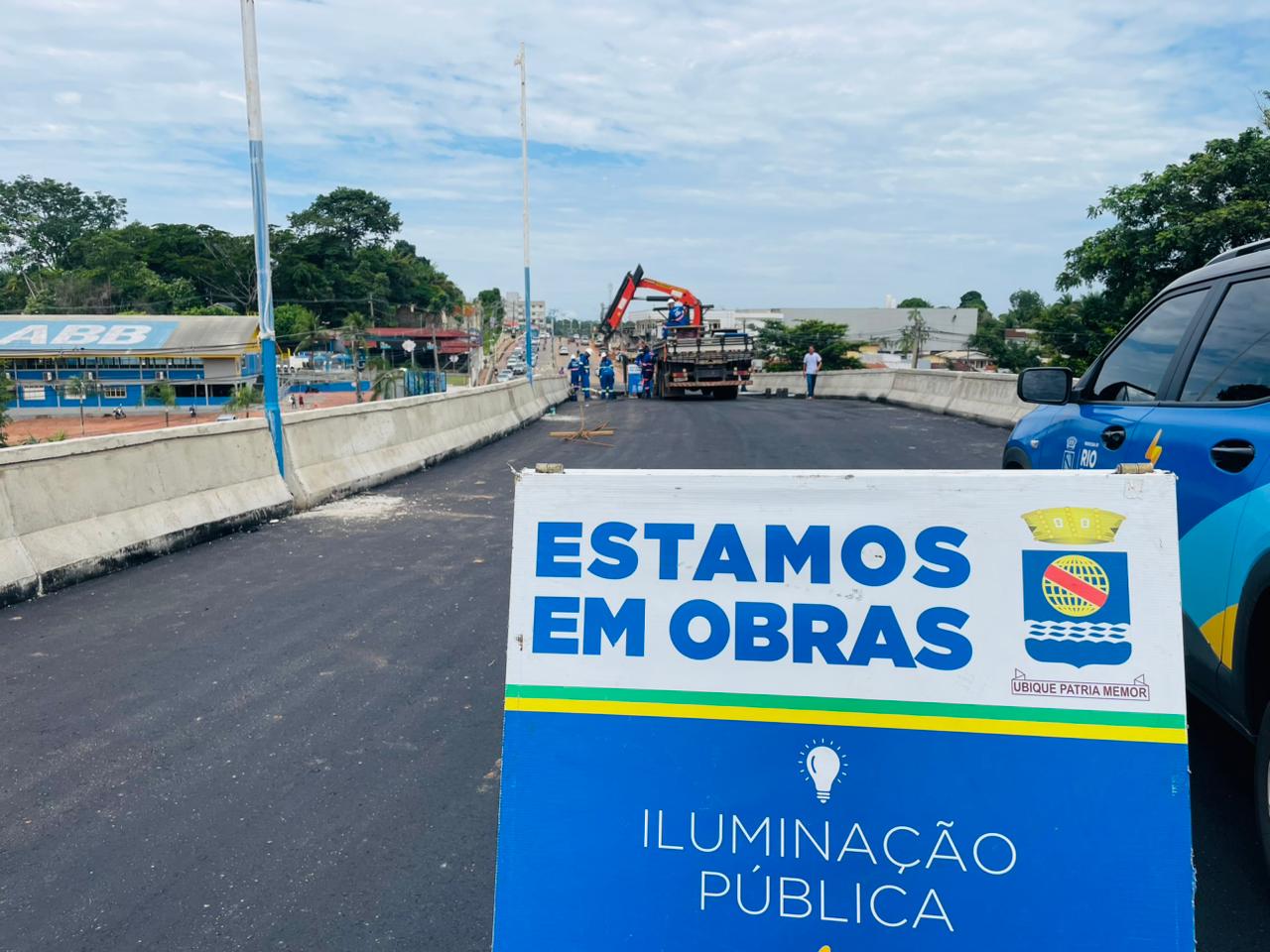 Equipe realizou a instalação do sistema de iluminação no Elevado Mamedio Bittar, obra estruturante com 278 metros de extensão. (Foto: Wilkes Silva/Secom)