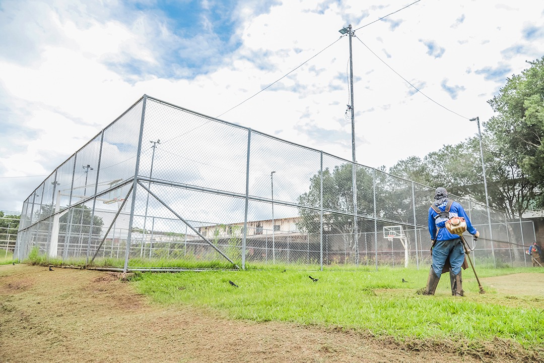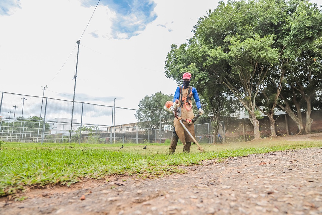 Com equipes permanentes, gestão municipal reforça a manutenção dos espaços públicos para garantir segurança, lazer e bem-estar da população durante período chuvoso