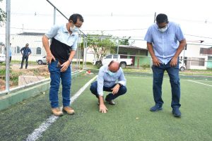 Prefeito de Rio Branco vistoria obra em quadra sintética no bairro Raimundo Melo 4 de fevereiro de 2022