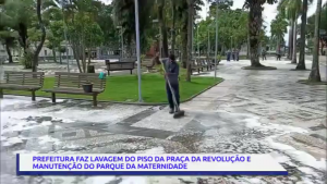 Prefeitura faz lavagem do piso da Praça da Revolução e manutenção do Parque da Maternidade 14 de abril de 2021